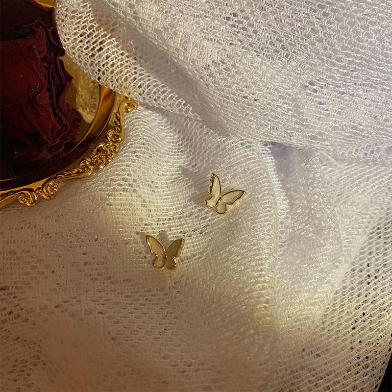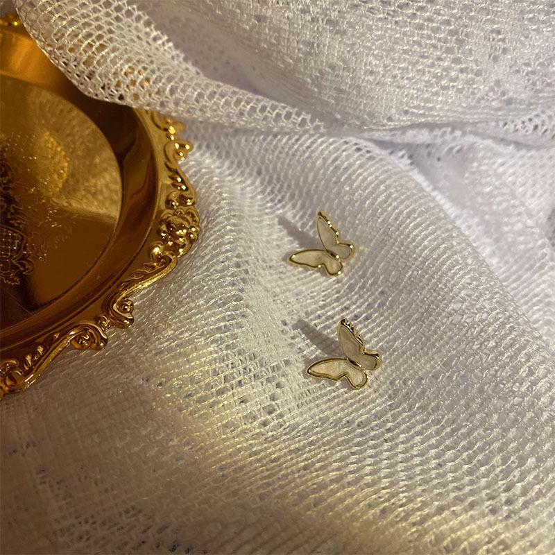 Pendientes Vintage de Alas de Mariposa con Aguja de Plata S925 Mini Pendientes Elegantes Simples Mori de Perla de Concha de Imitación Coreana para Mujer