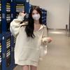 Nueva Serie para Mujer Sudadera de Terciopelo con Mangas Raglán Bloque de Color Otoño e Invierno Nueva Suelta Cuello Redondo Jersey Hombro Descubierto Color Sólido