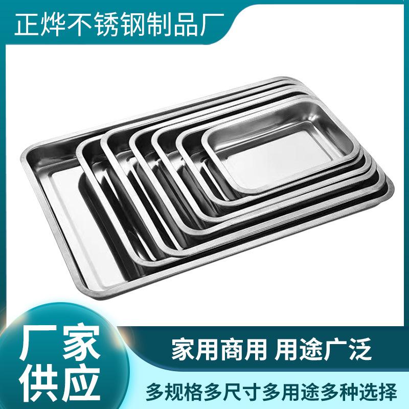 Plato cuadrado de fondo plano de acero inoxidable profundizado plato para arroz al vapor bandeja rectangular plato para cena plato para hotel plato para barbacoa venta al por mayor de fábrica