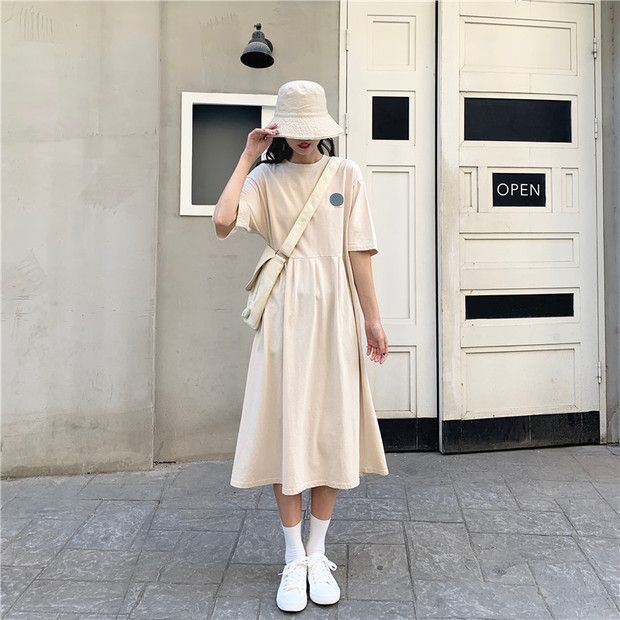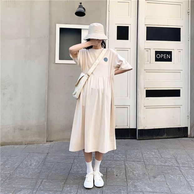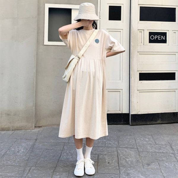 Vestido de maternidad, vestido de verano 2024, manga corta, largo medio, falda por encima de la rodilla, camiseta suelta, vestido de maternidad de talla grande, vestido de verano.