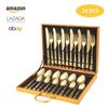 Cubertería Familiar Amazon Transfronteriza Western Steak 1010 Acero Inoxidable Cuchillo, Tenedor, Cuchara Caja de Madera 24 Piezas Set de Vajilla de Regalo