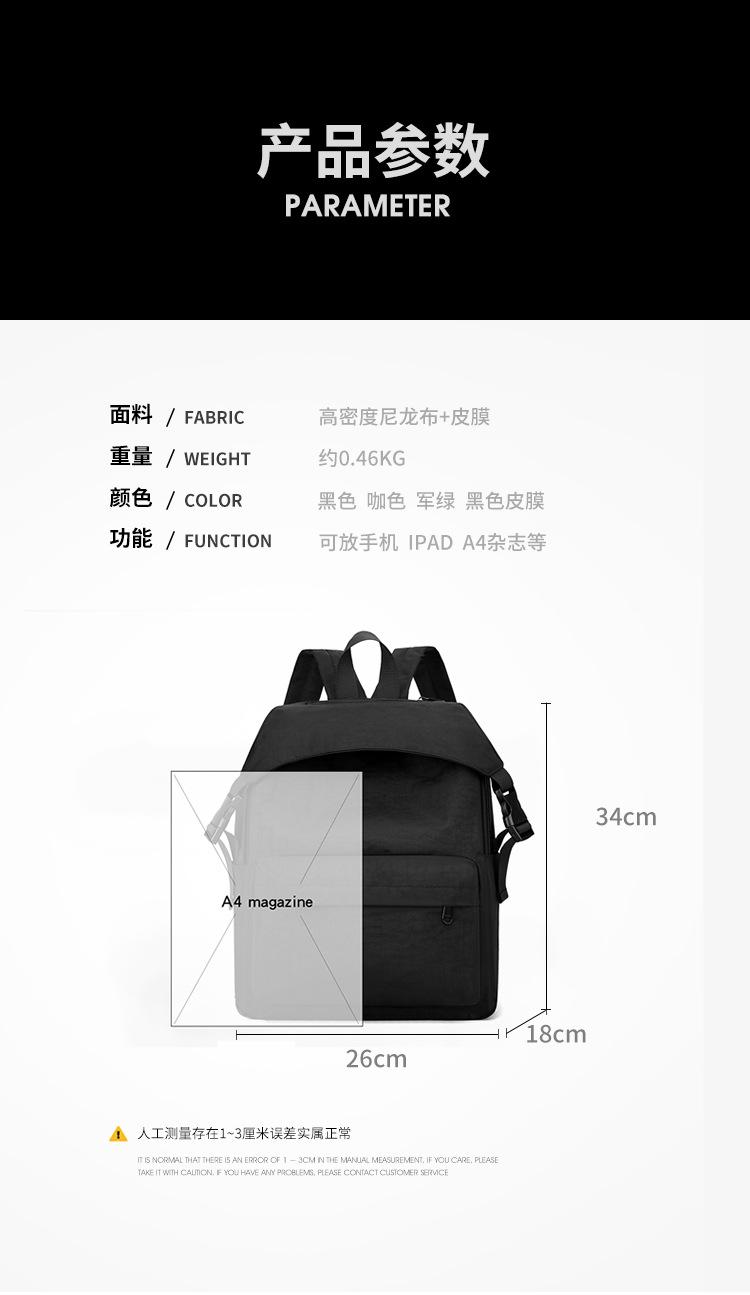 Comercio exterior transfronterizo nueva moda versión coreana de alto valor mochila de estudiante versátil ligera de gran capacidad color sólido generación de cabello