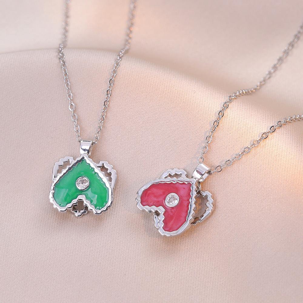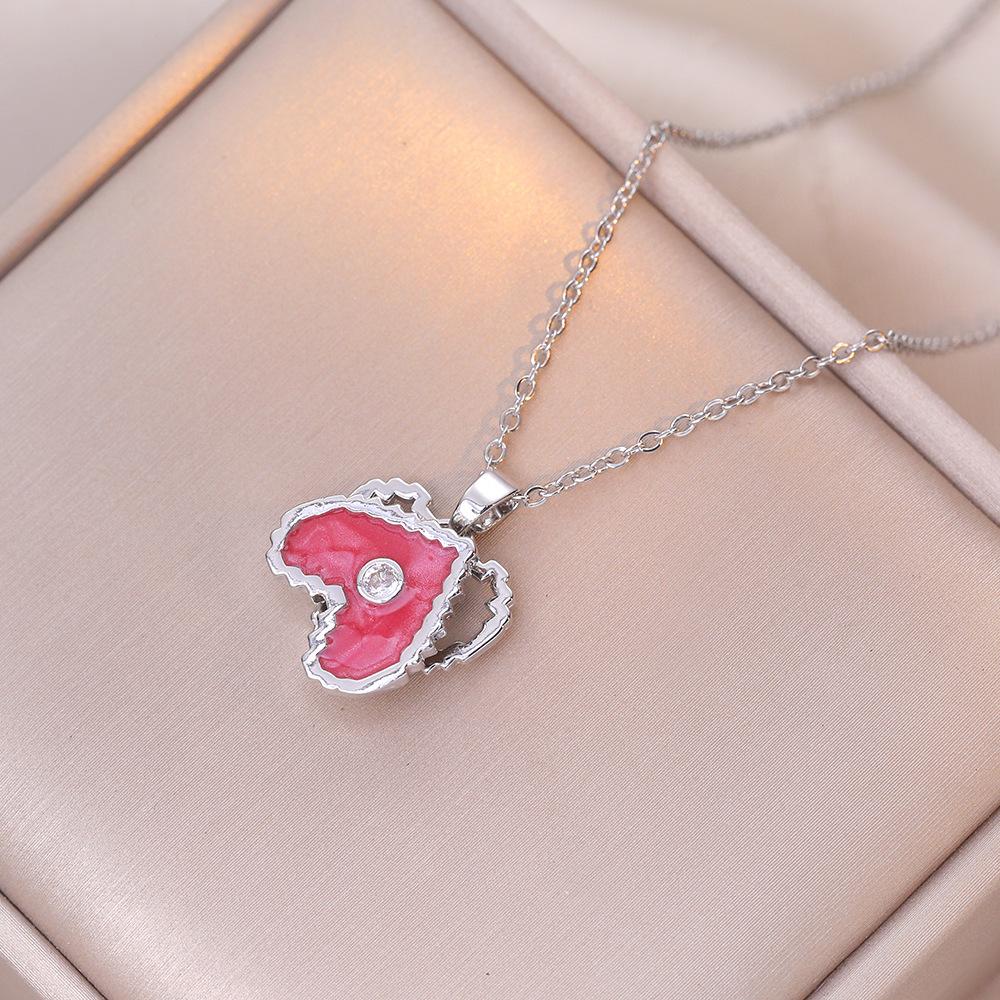 Collar con colgante de corazón de melocotón para mujer, estilo coreano, ligero, lujoso, con forma de corazón, cadena de clavícula a juego.