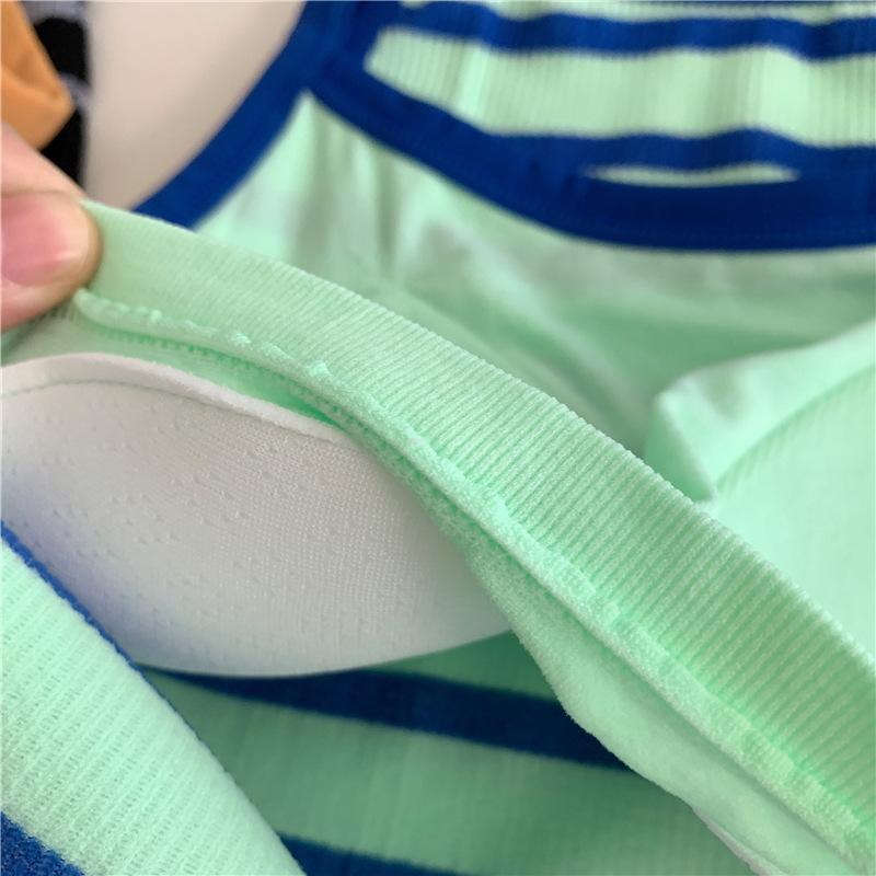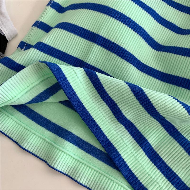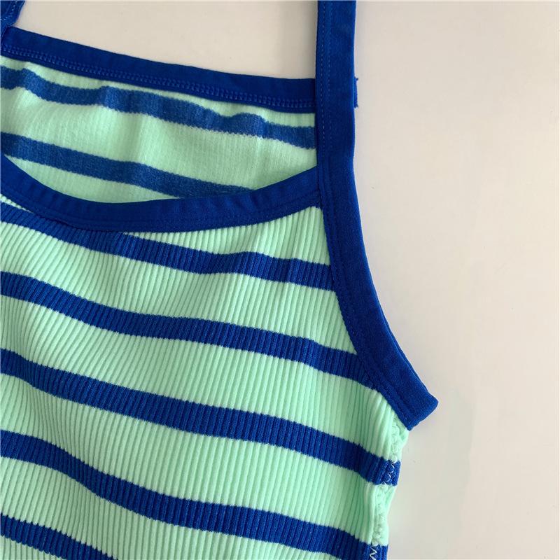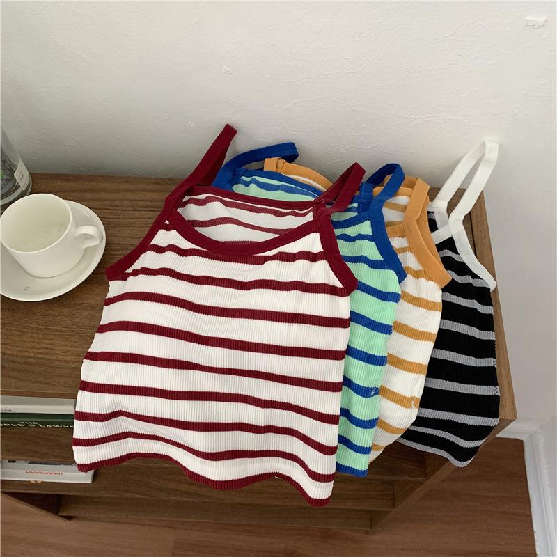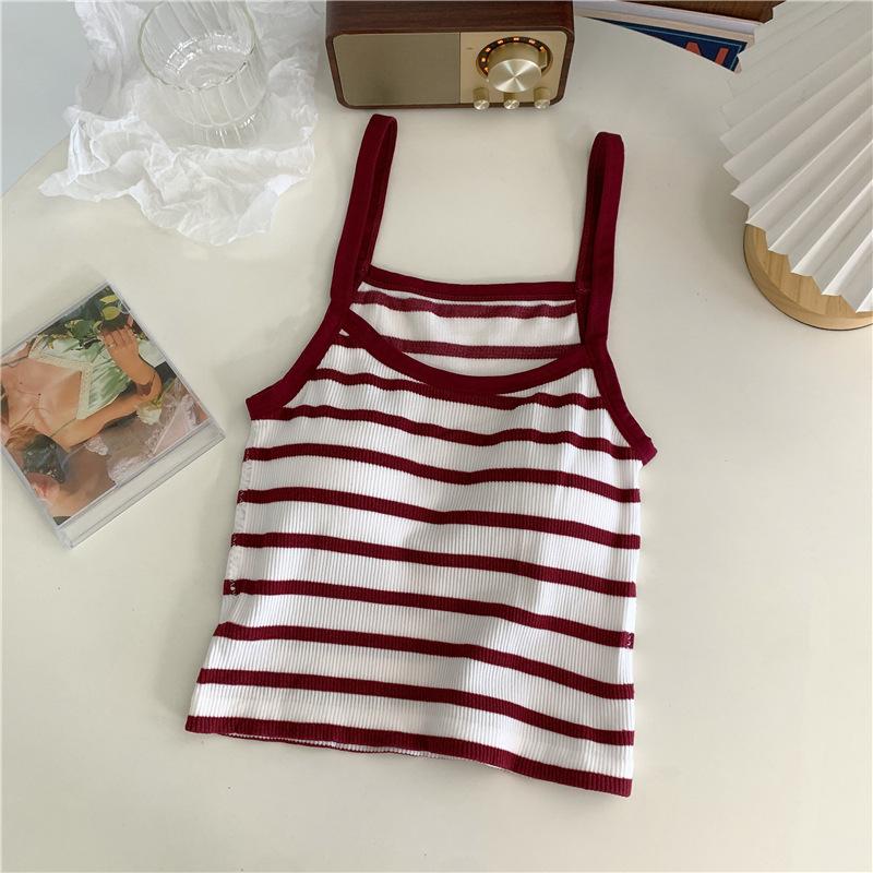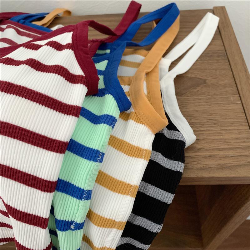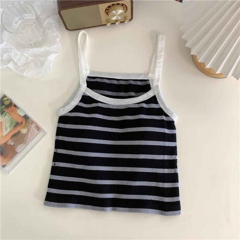 Camisola pequeña a rayas de color contrastante para mujer, ropa interior ajustada con almohadilla para el pecho, chaleco exterior dulce, novedad de verano de 2024