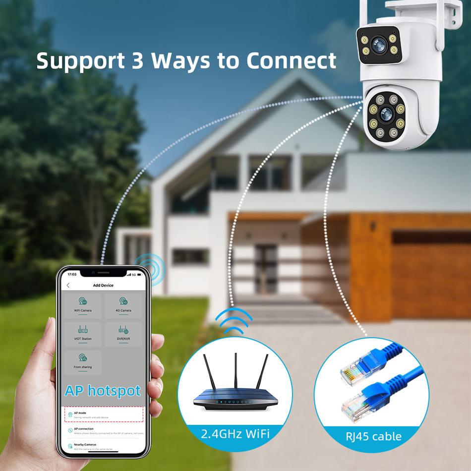Cámara de Vigilancia Tuya Smart de Doble Lente con Visualización Remota en Teléfono Móvil, Monitor de Doble Ojo y Conectividad Ethernet para Monitoreo Inteligente