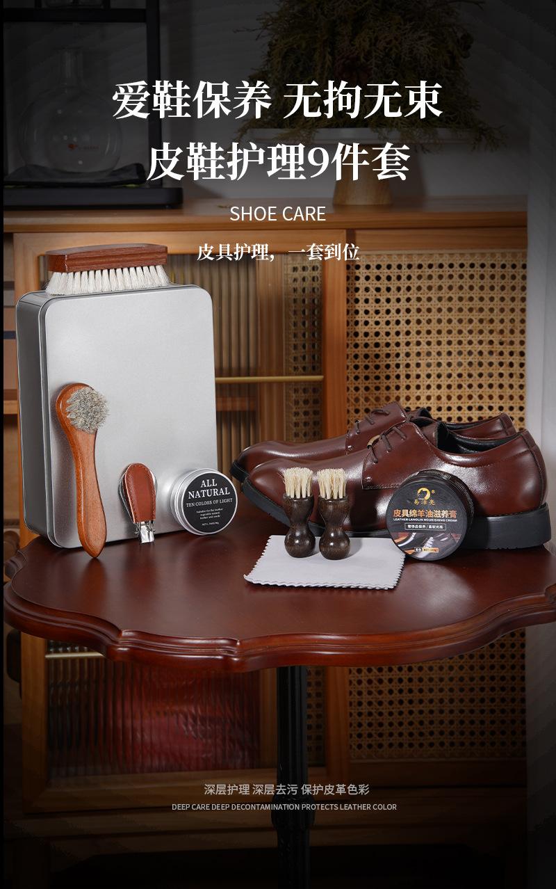 Rosewood iron box 9-piece set (black lanolin + mink oil), Rosewood iron box 9-piece set (colorless lanolin + m...