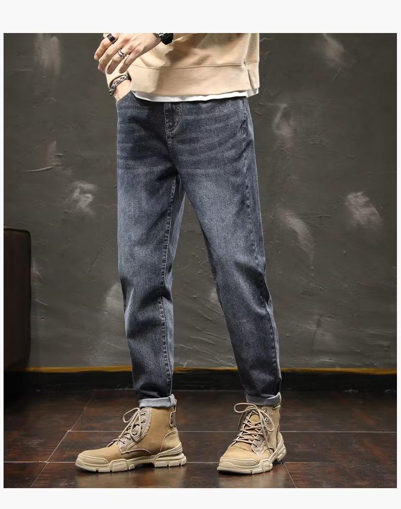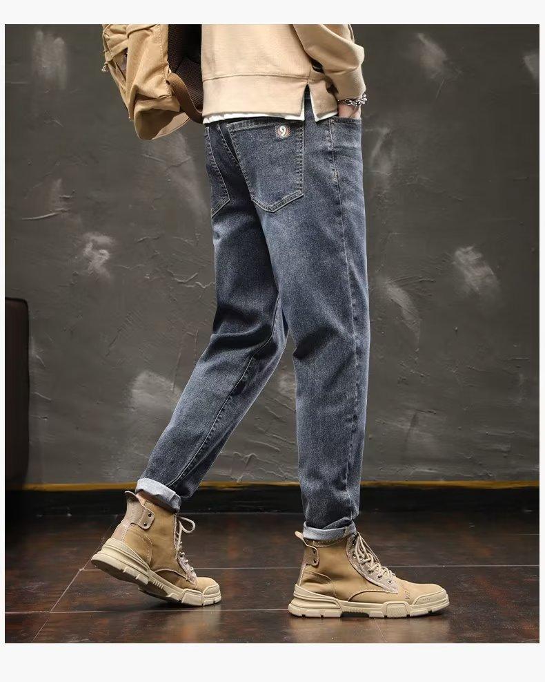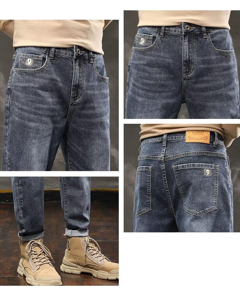 Pantalones vaqueros de otoño para hombre, nueva marca de moda, pantalones casuales rectos, pantalones cortos