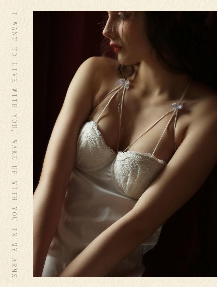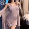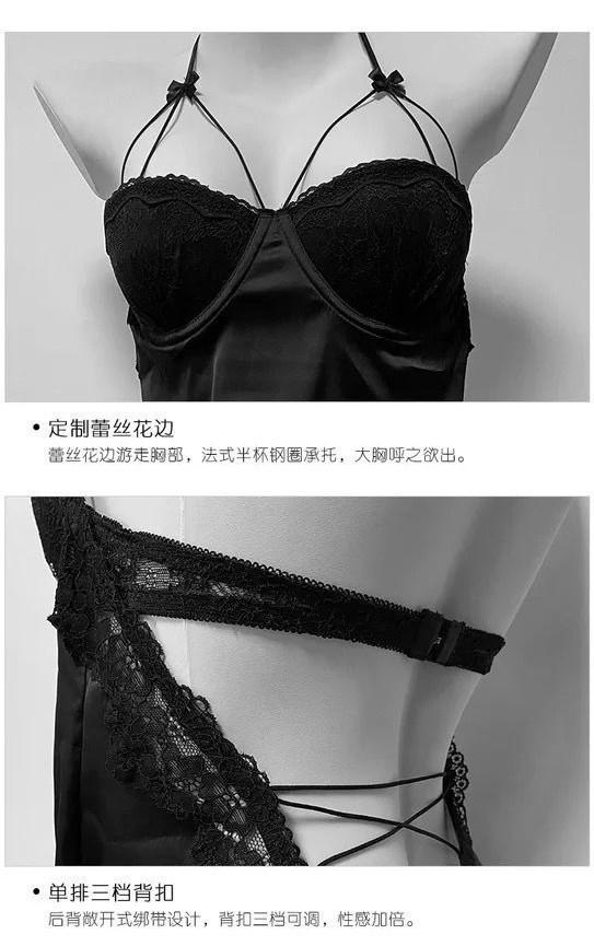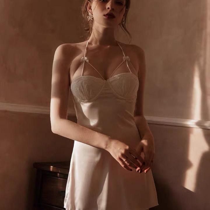 Camisón Sexy con Diseño Descubierto en la Espalda, Realza Busto Pequeño, Seda de Hielo con Almohadillas en el Pecho, Camisola para el Hogar, Venta al por Mayor 6032 Estilo Francés Femenino