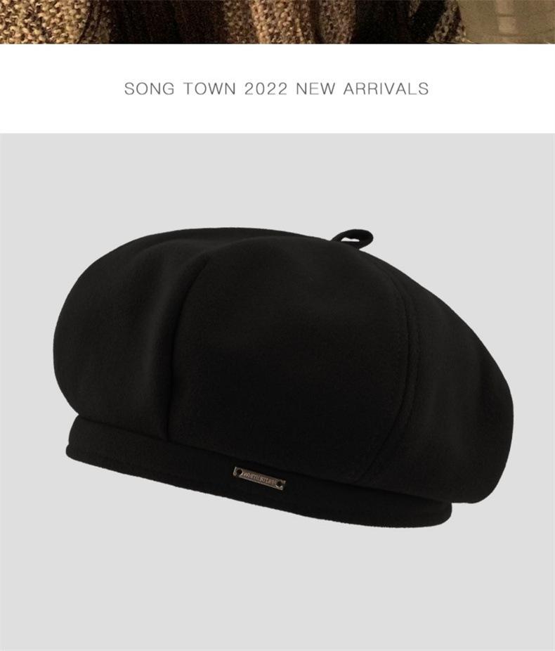Boina de Mujer Nueva Primavera y Otoño Ins Sombrero de Pintor de Celebridad Cibernética Moda Súper Popular Ropa Exterior Gorra Octogonal Pequeña de Color Sólido