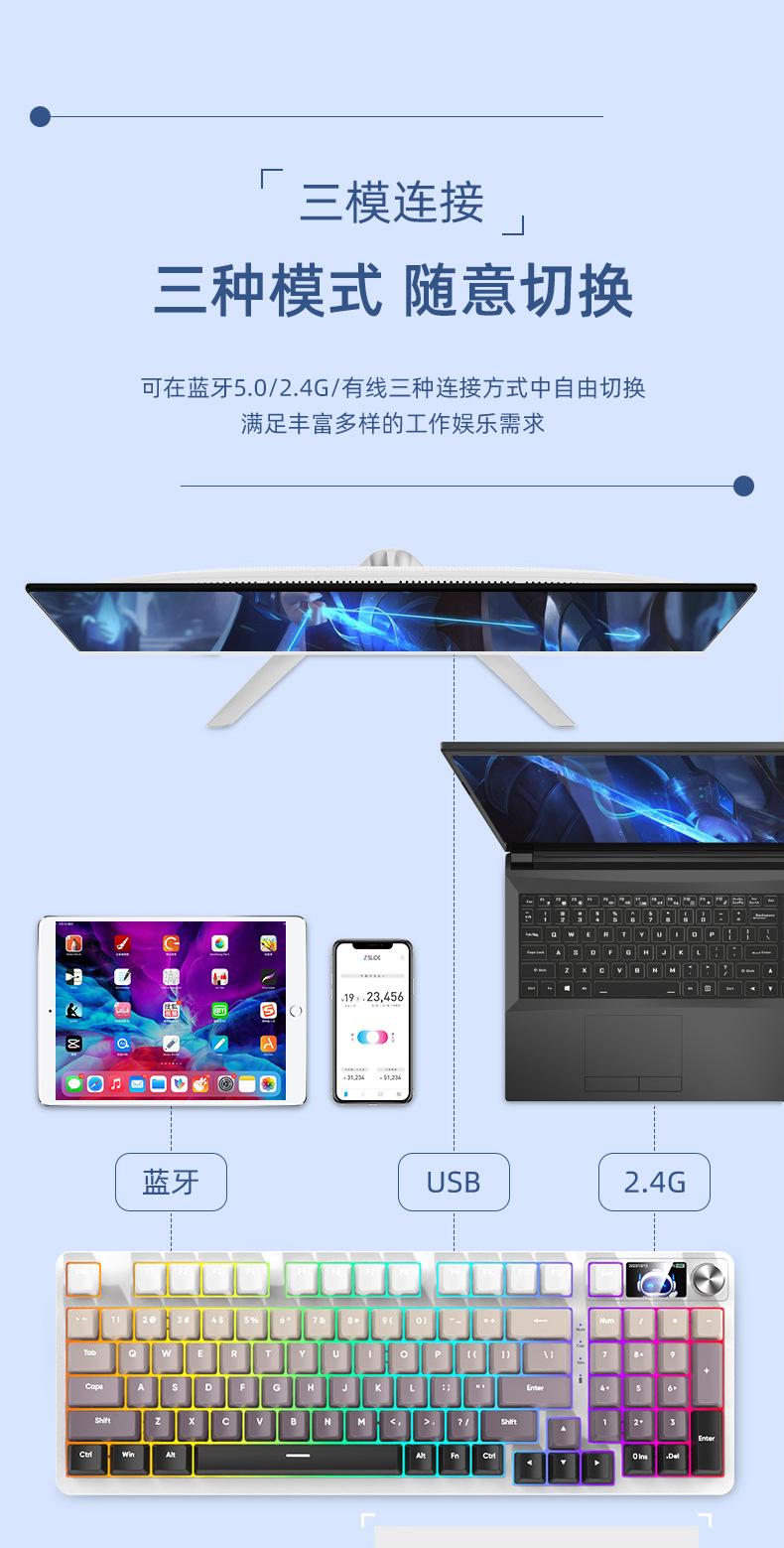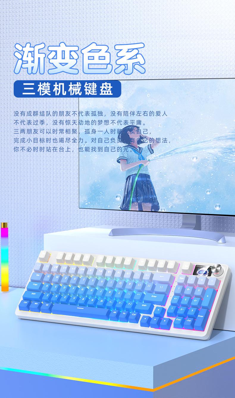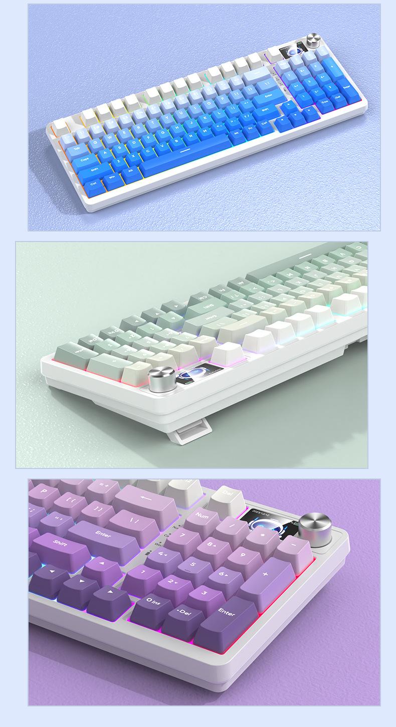 Teclado mecánico inalámbrico Bluetooth de 98 teclas para juegos de deportes electrónicos con tres modos, eje verde, negro, rojo, pantalla personalizada, conexión en caliente