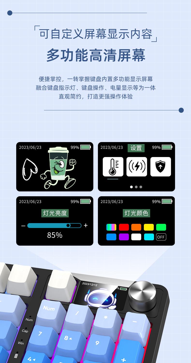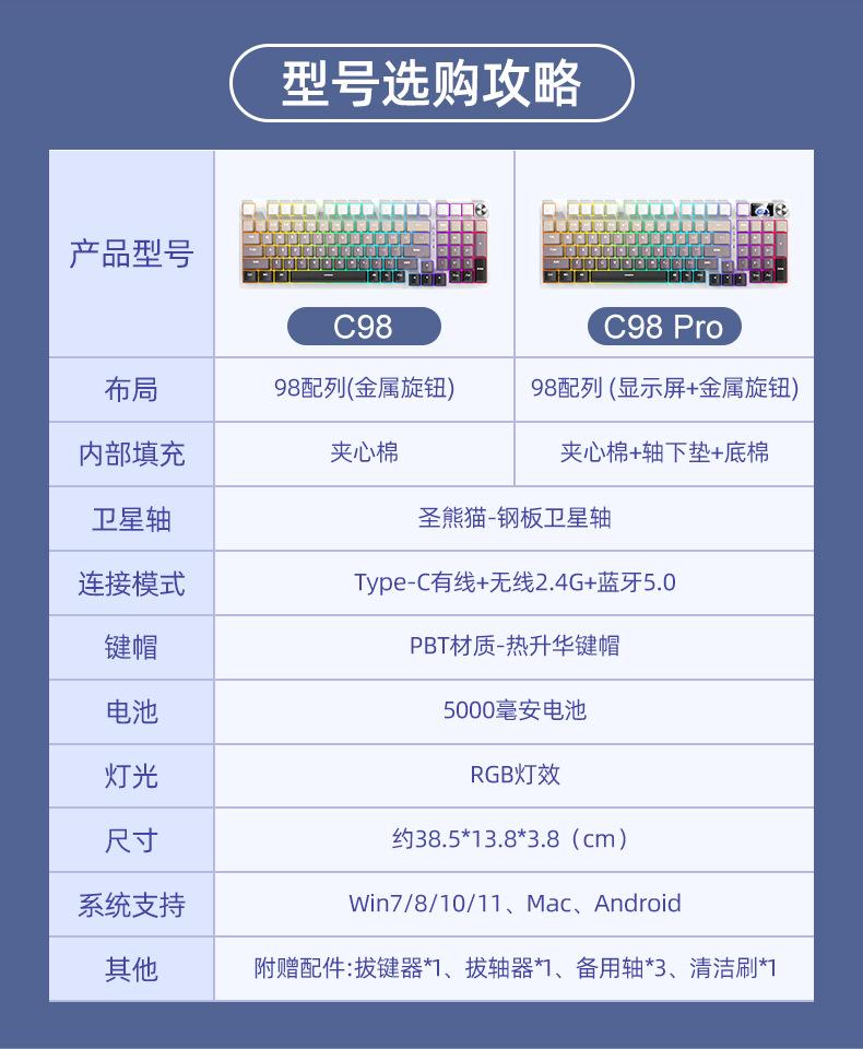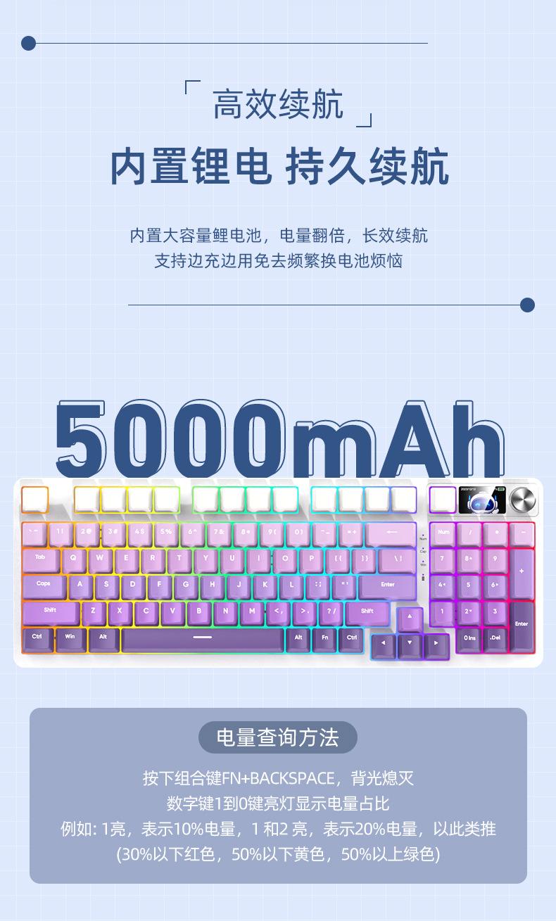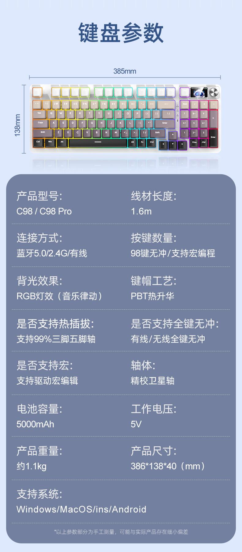 Teclado mecánico inalámbrico Bluetooth de 98 teclas para juegos de deportes electrónicos con tres modos, eje verde, negro, rojo, pantalla personalizada, conexión en caliente