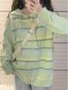 Suéter con capucha de estilo japonés retro a rayas con contraste de color para mujer, chaqueta de punto holgada de estilo perezoso para otoño e invierno, moderna