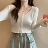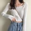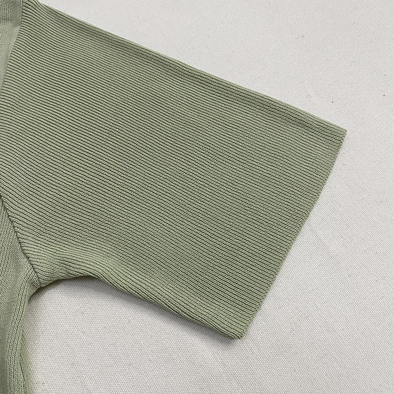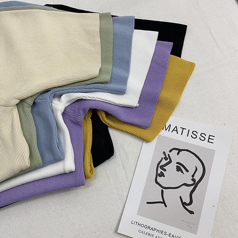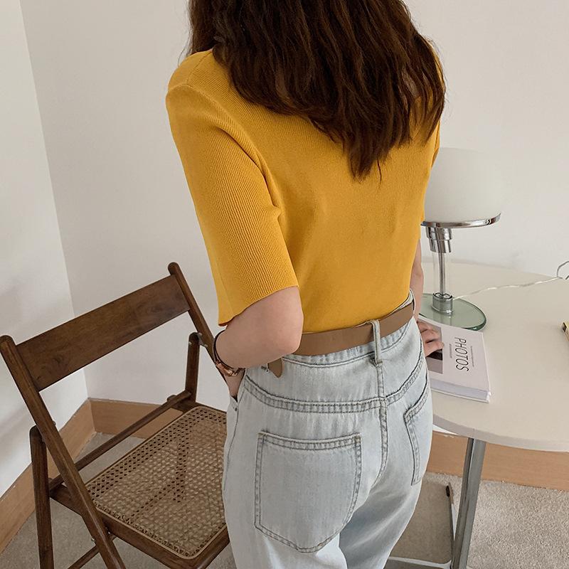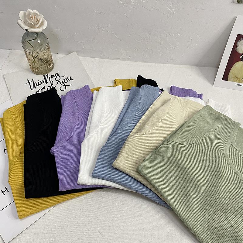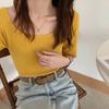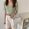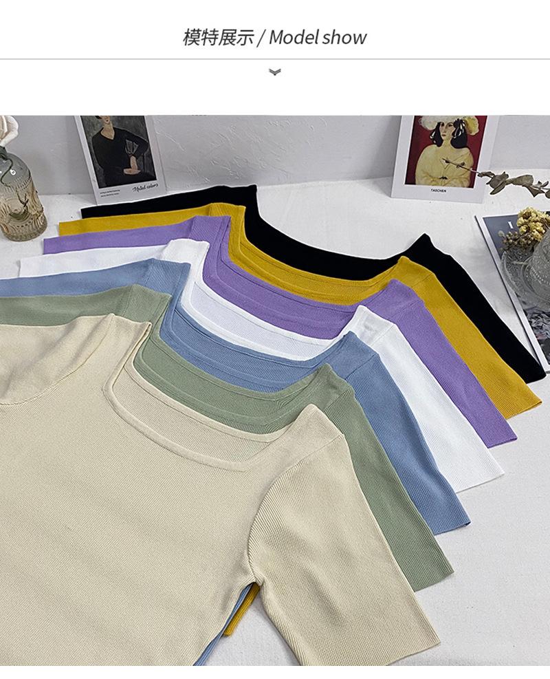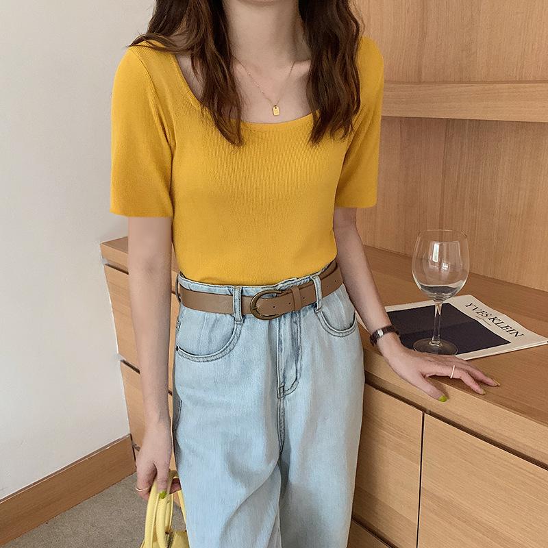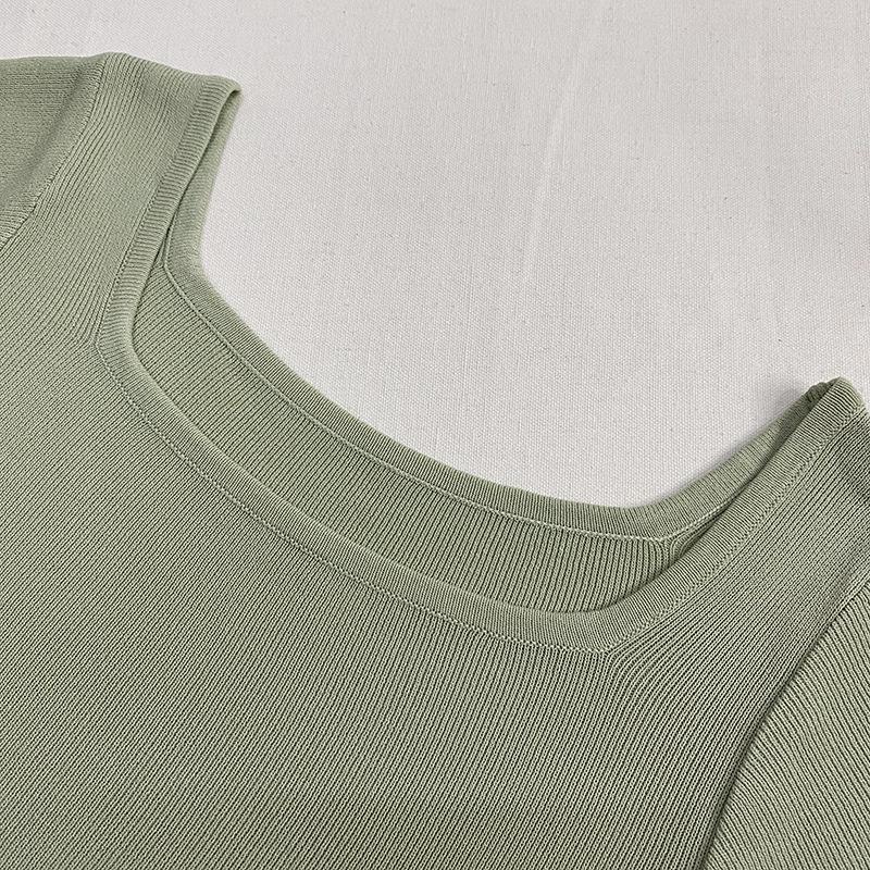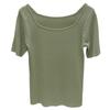 Suéter de punto básico de manga corta con cuello cuadrado francés para mujer, camiseta de seda helada adelgazante sin espalda de color liso, combina con todo.