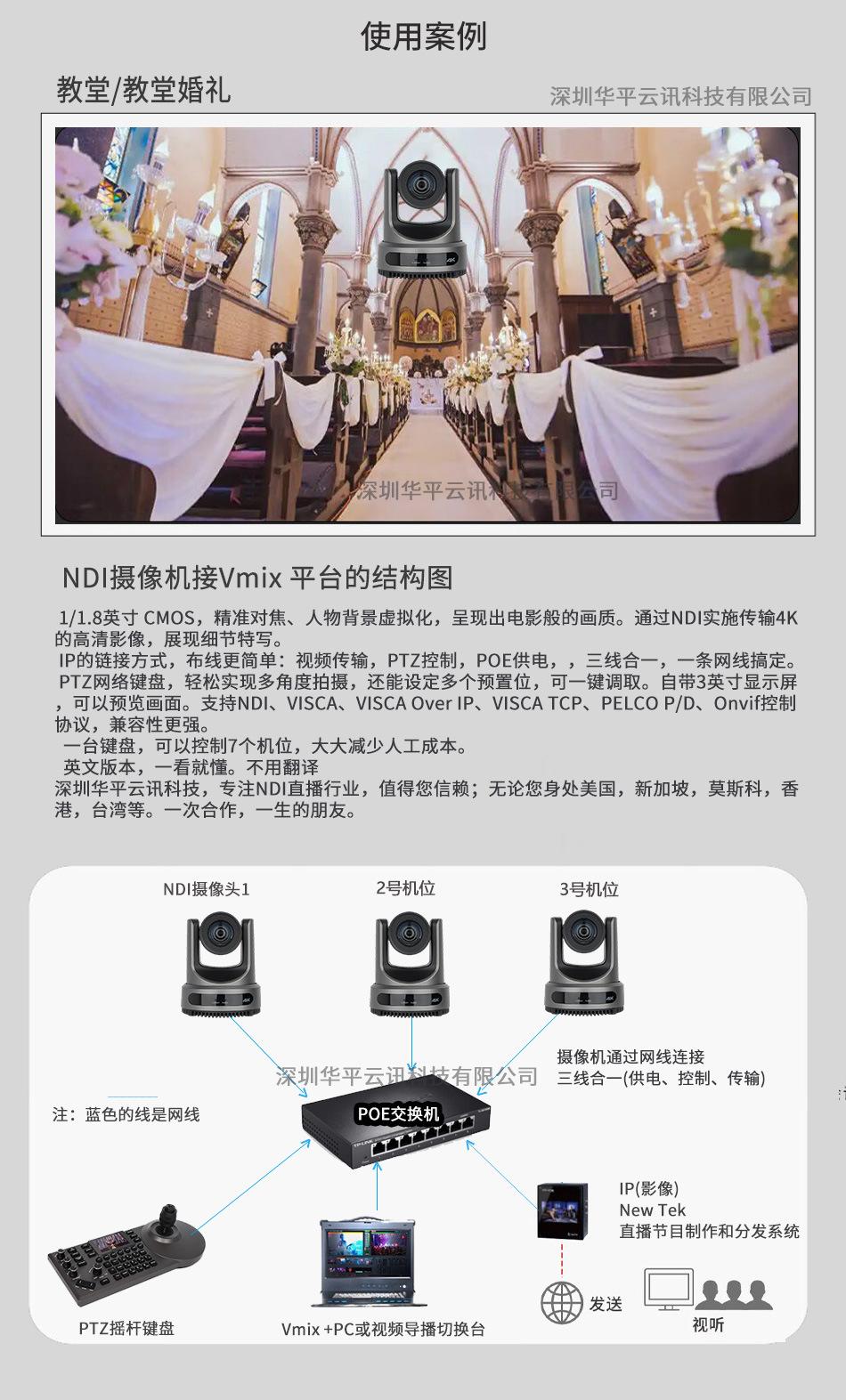 Cámara NDI 4K HD para conferencias en vivo con seguimiento de IA, alimentación por PoE, guía de grabación para bar de iglesia