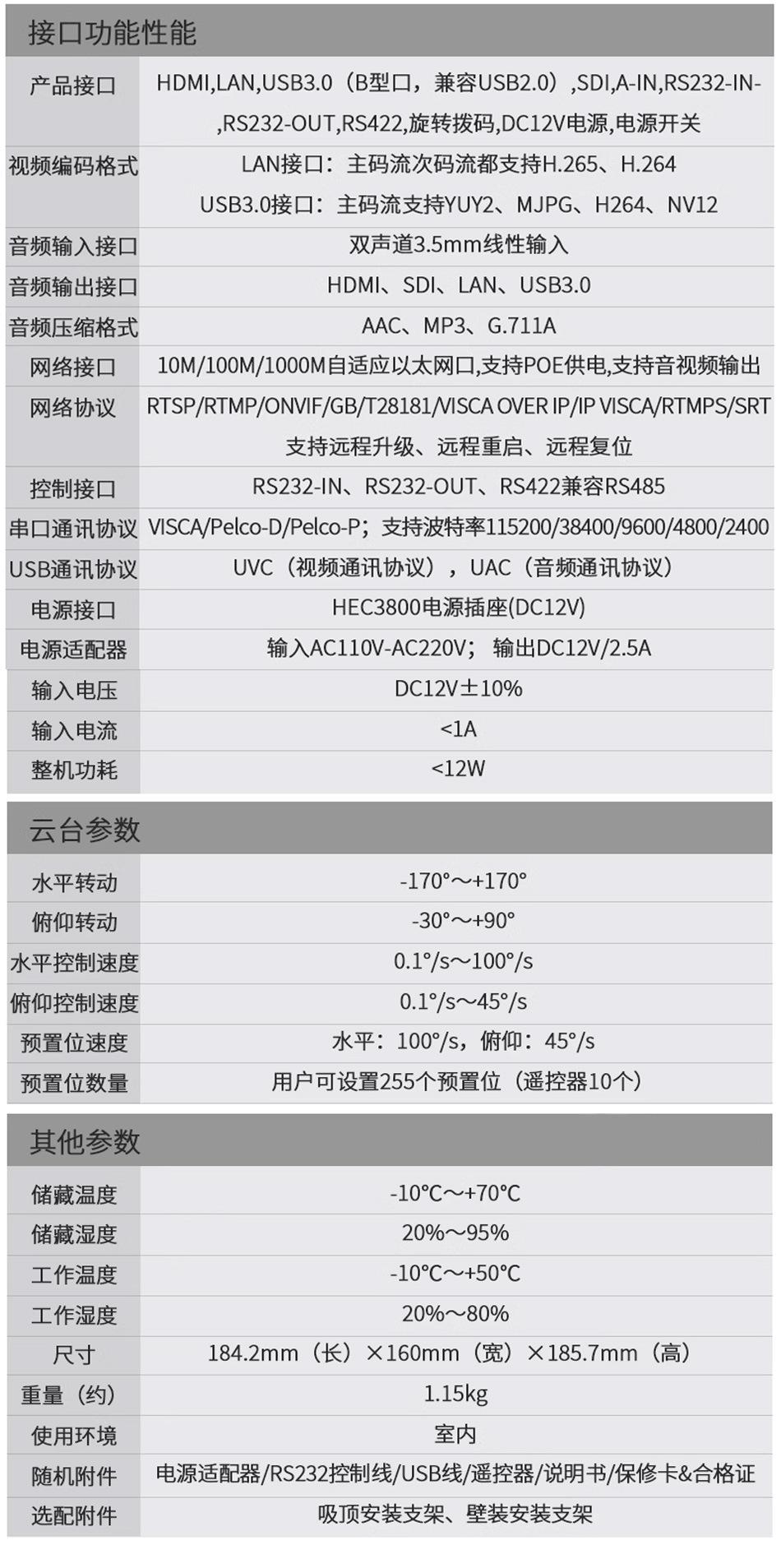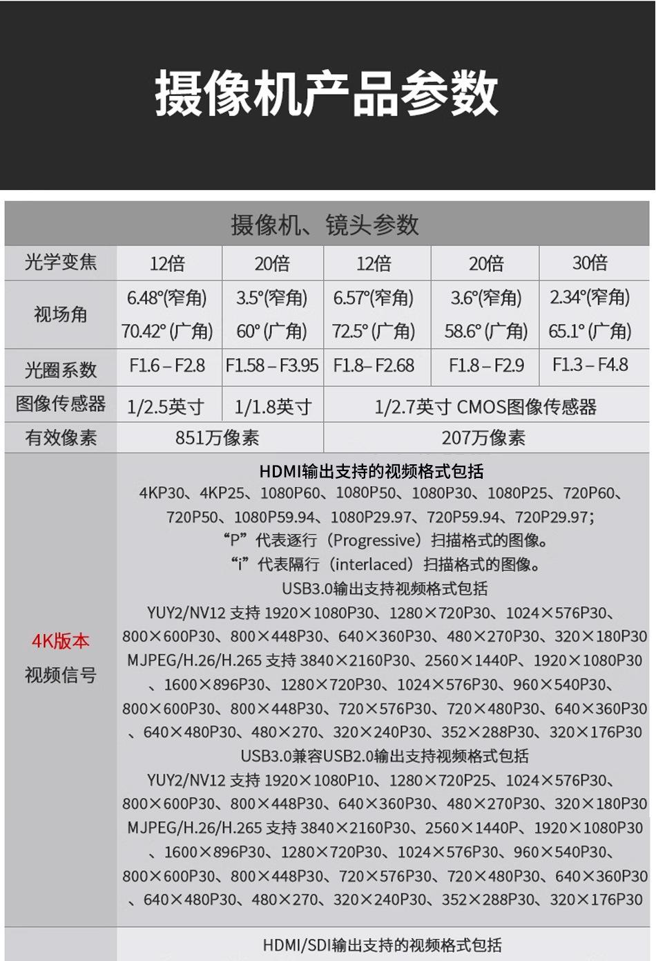 1080p+12x+ai, 1080p+20x+ai, 1080p+30x+ai, 1080p+12x+ndi, 1080p+20x+ndi, Ndi+30 times+1080p, 12 times + 4k ultr...
