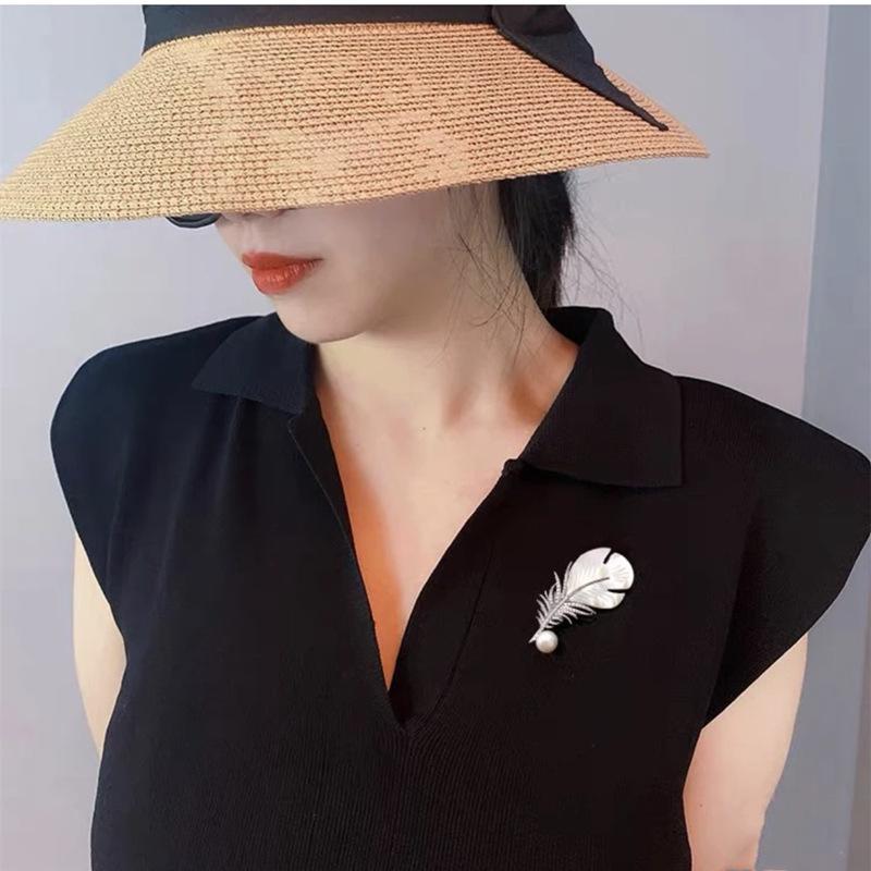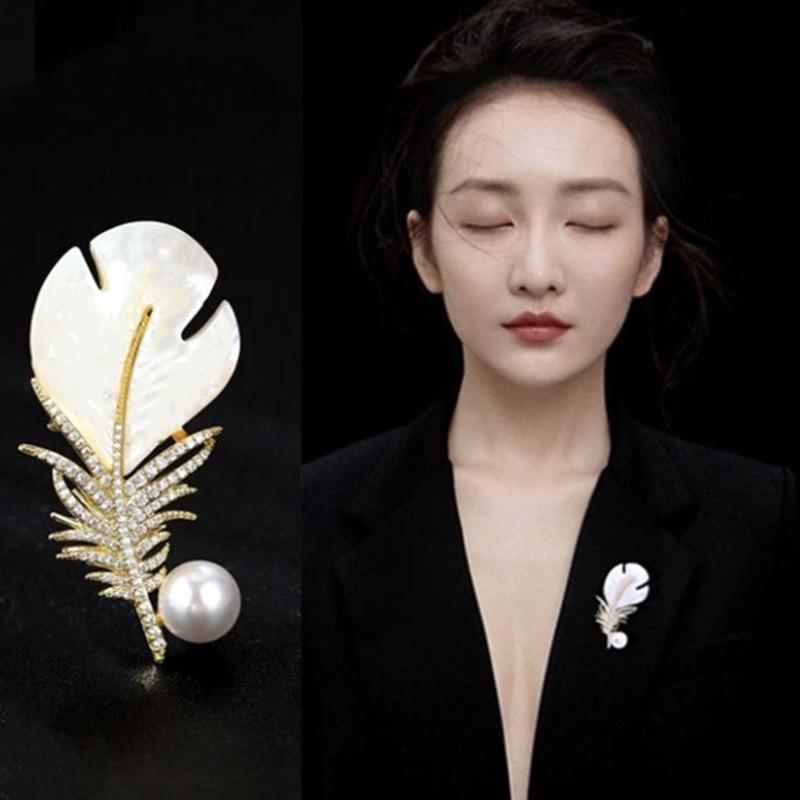 Broche de plumas exquisito de alta calidad, exquisito accesorio de ramillete para abrigo de traje, ligero y lujoso para mujer, alfiler de alta calidad, botón antiluz.