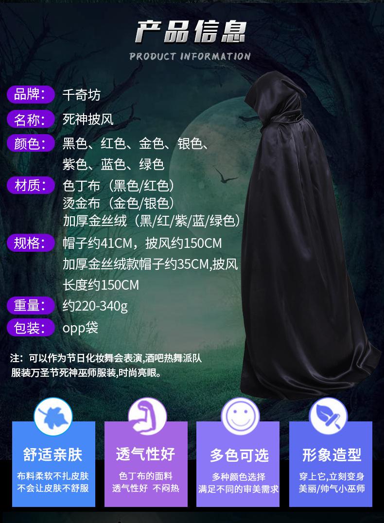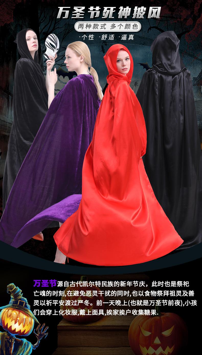 Disfraz de Halloween Capa de Muerte Conjunto para Adulto Capa Negra de Bruja Vampiro Capa de Mago