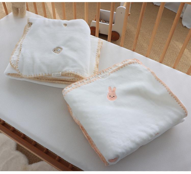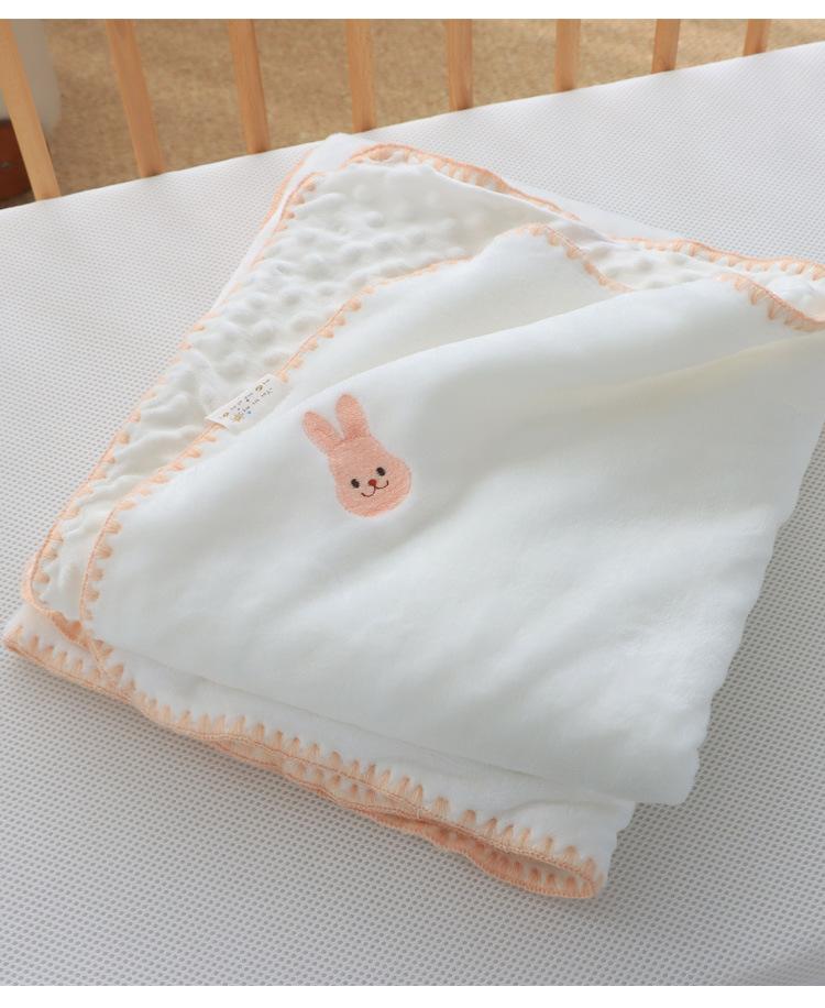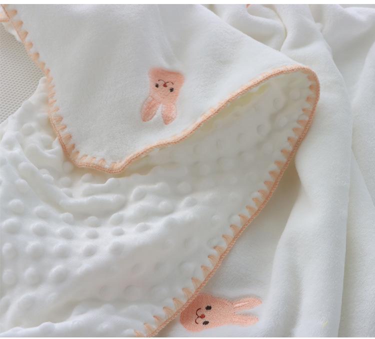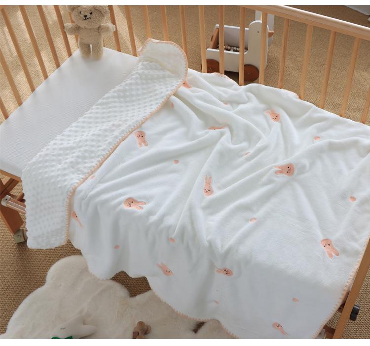 Embroidered bear dots-milk velvet + Bean velvet quilt, Embroidery Powder Rabbit-Milk Velvet + Bean Velvet