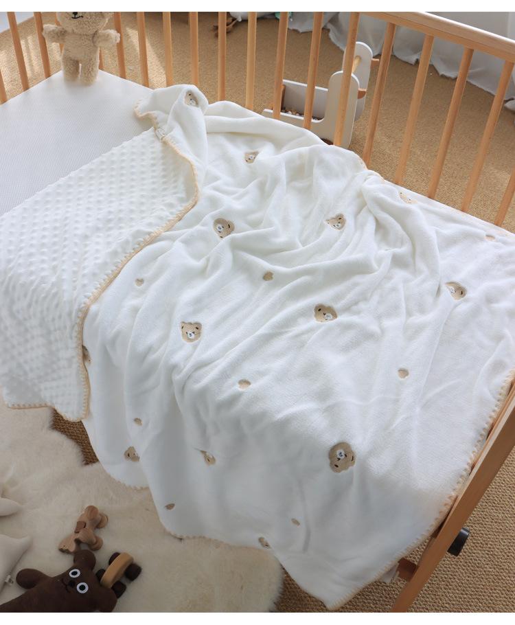 Embroidered bear dots-milk velvet + Bean velvet quilt