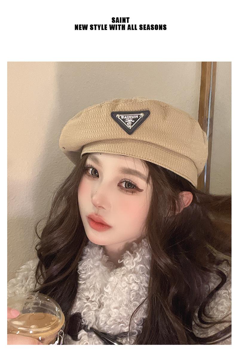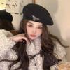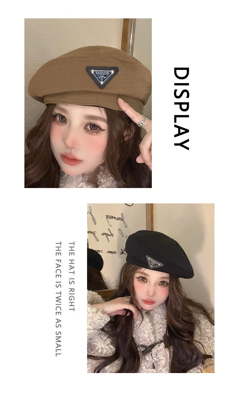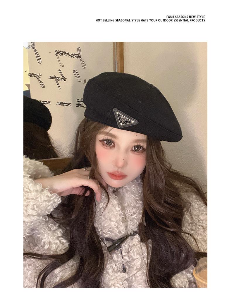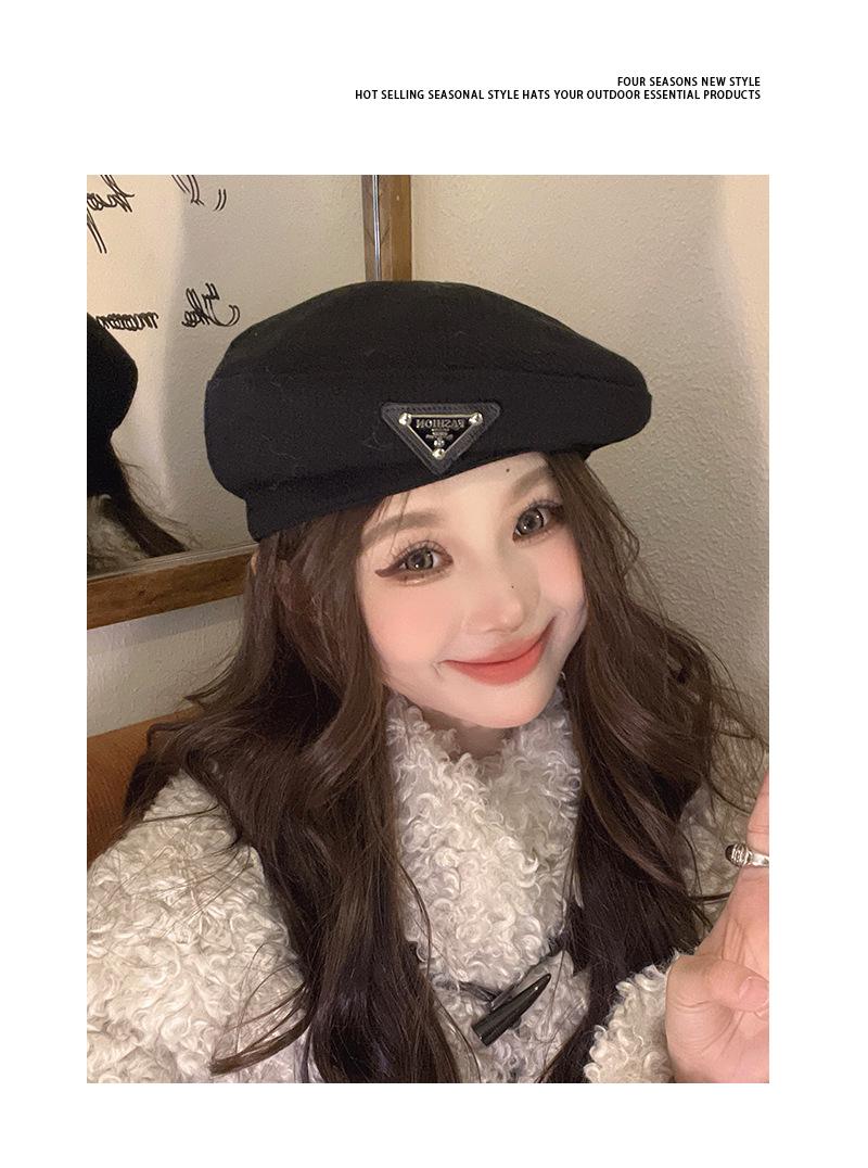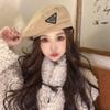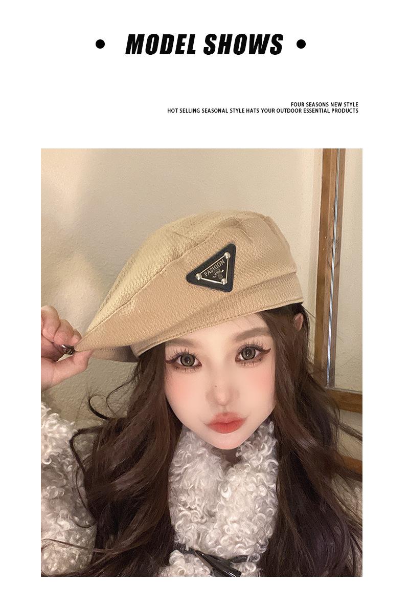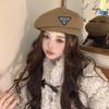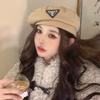 Estilo japonés celebridad de internet mismo estilo hebilla de uña etiqueta triangular boina femenina otoño e invierno cálido que hace que la cara parezca pequeña sombrero de pintor pequeño sombrero de repartidor masculino