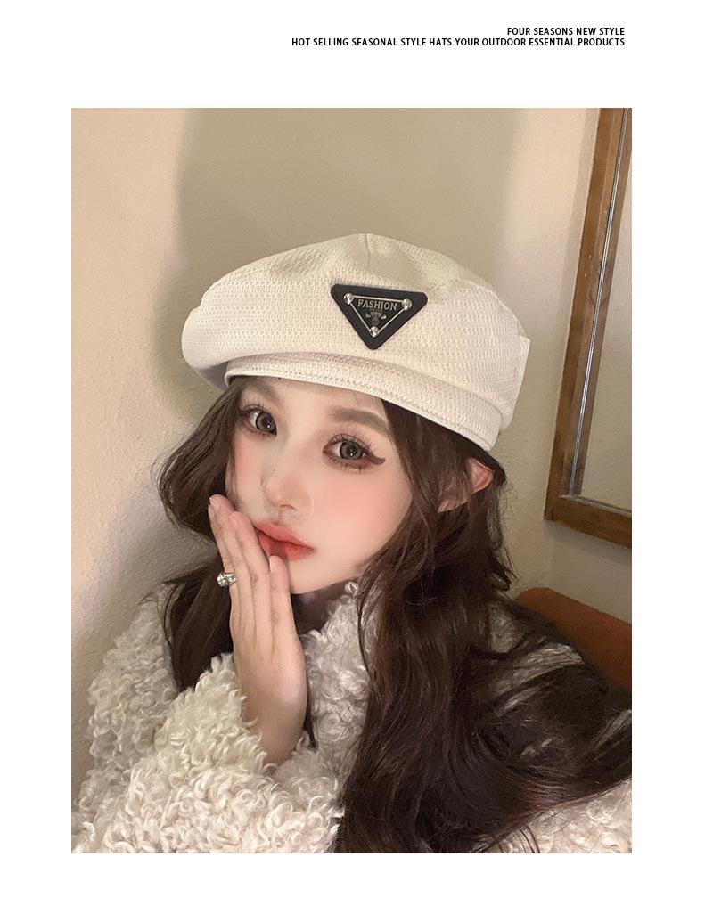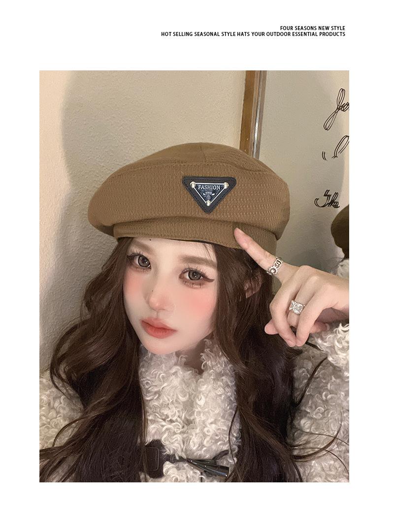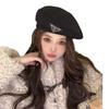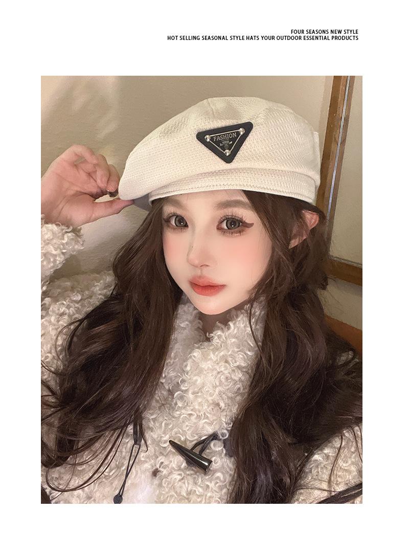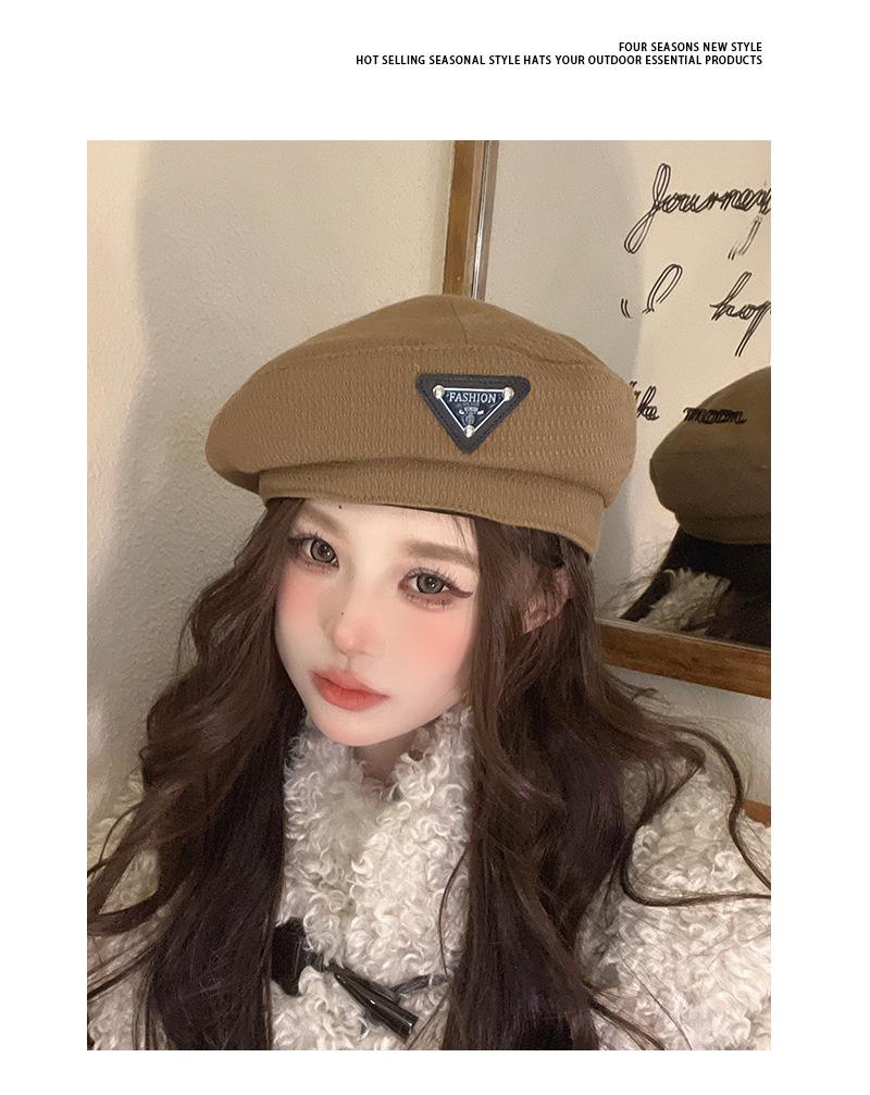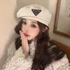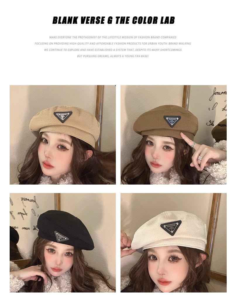 Estilo japonés celebridad de internet mismo estilo hebilla de uña etiqueta triangular boina femenina otoño e invierno cálido que hace que la cara parezca pequeña sombrero de pintor pequeño sombrero de repartidor masculino