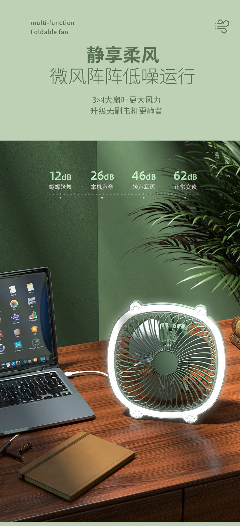 Ventilador Plegable Retráctil Recargable por USB Portátil Silencioso Escritorio de Oficina Escritorio Dormitorio Hogar Ventilador Pequeño