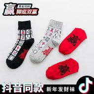 Calcetines de mahjong estilo Douyin, calcetines de Año Nuevo con la palabra "ganar", calcetines de tubo medio de algodón para otoño e invierno, año del zodiaco, estilo pareja, calcetines de mujer
