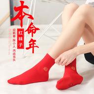 [¡5 pares envío gratis! Compra 1 lleva 5] Calcetines Año del Zodiaco para Hombre y Mujer Algodón estampado Hombrecito Calcetines Rojos Media caña Transpirables Calcetines de Año Nuevo
