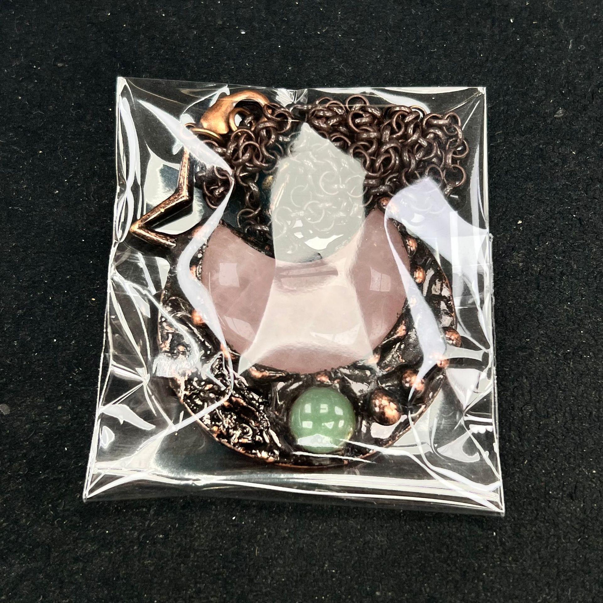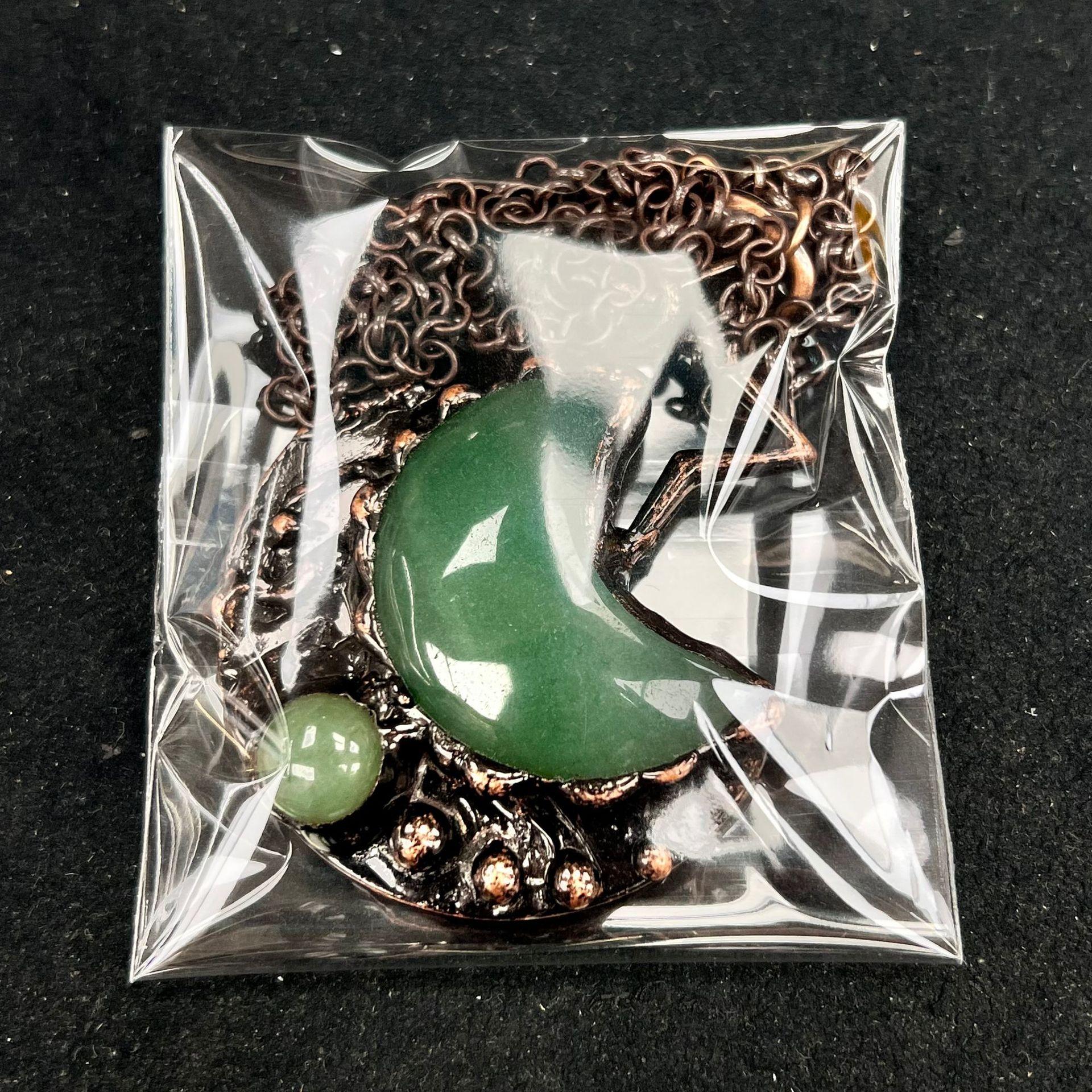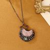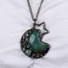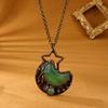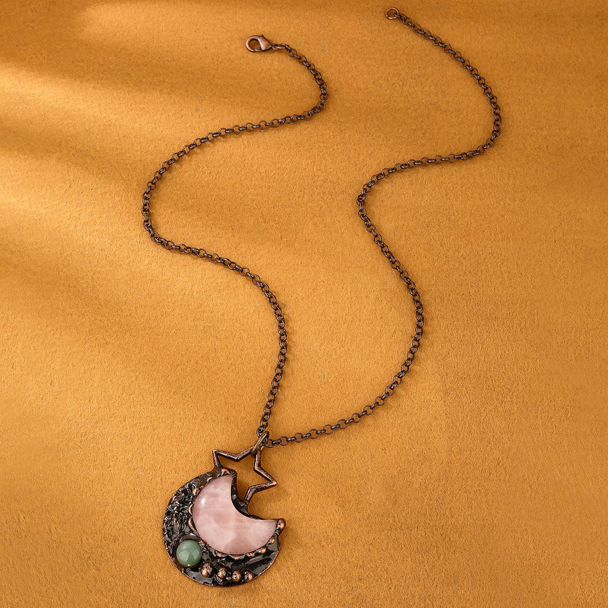 Collar con colgante de estrella lunar de jade Dongling verde de cristal rosa de estilo retro con incrustaciones de soldadura cocida a mano y superficie de huevo de jade Dongling verde