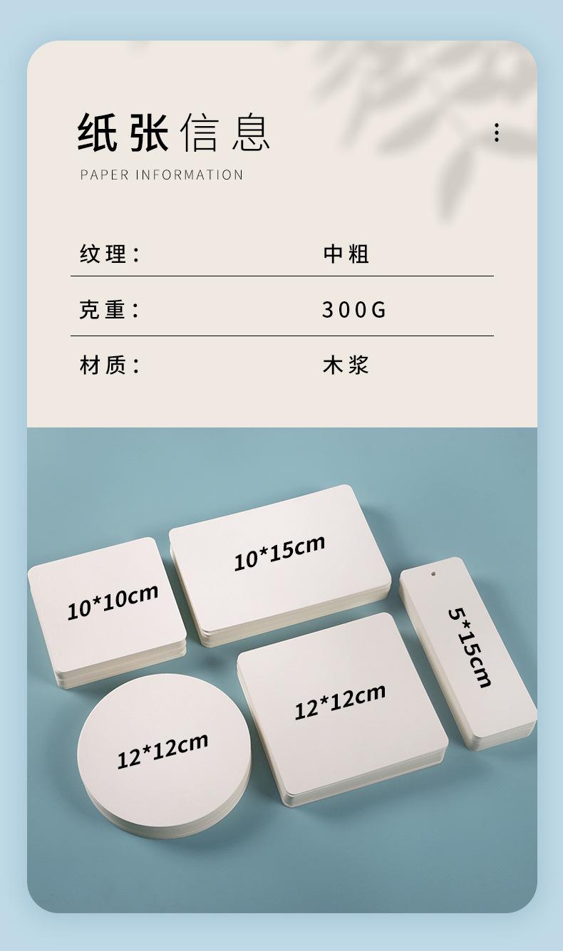 Postal de papel de acuarela de 300 g, pintura artística cuadrada, redonda, papel especial, cartón grueso de doble cara en blanco