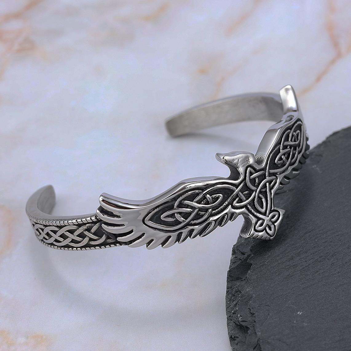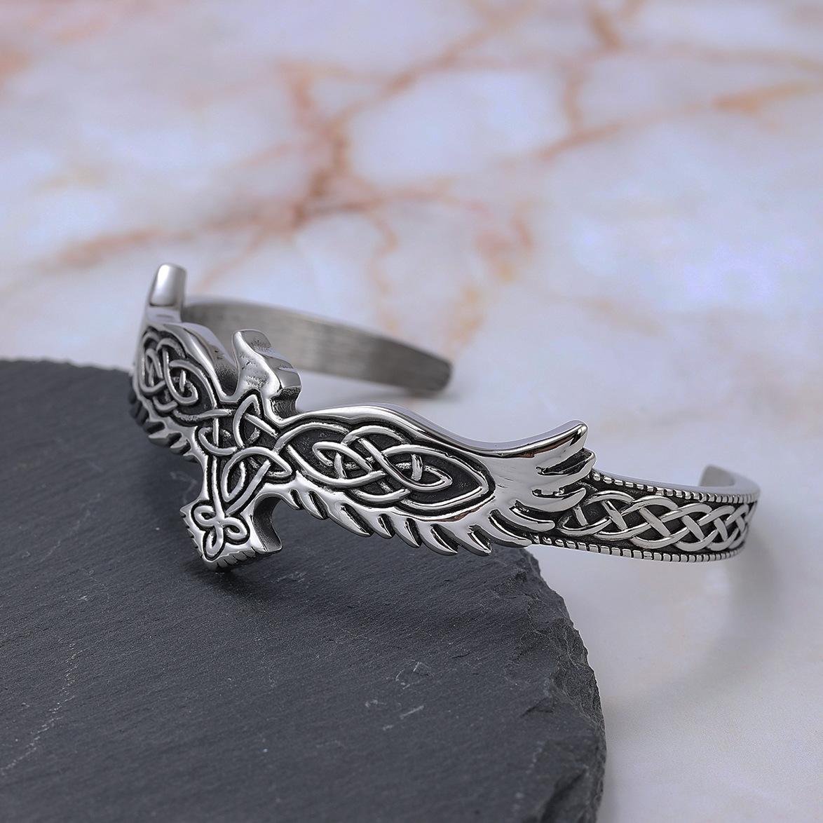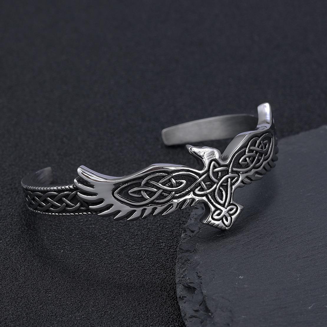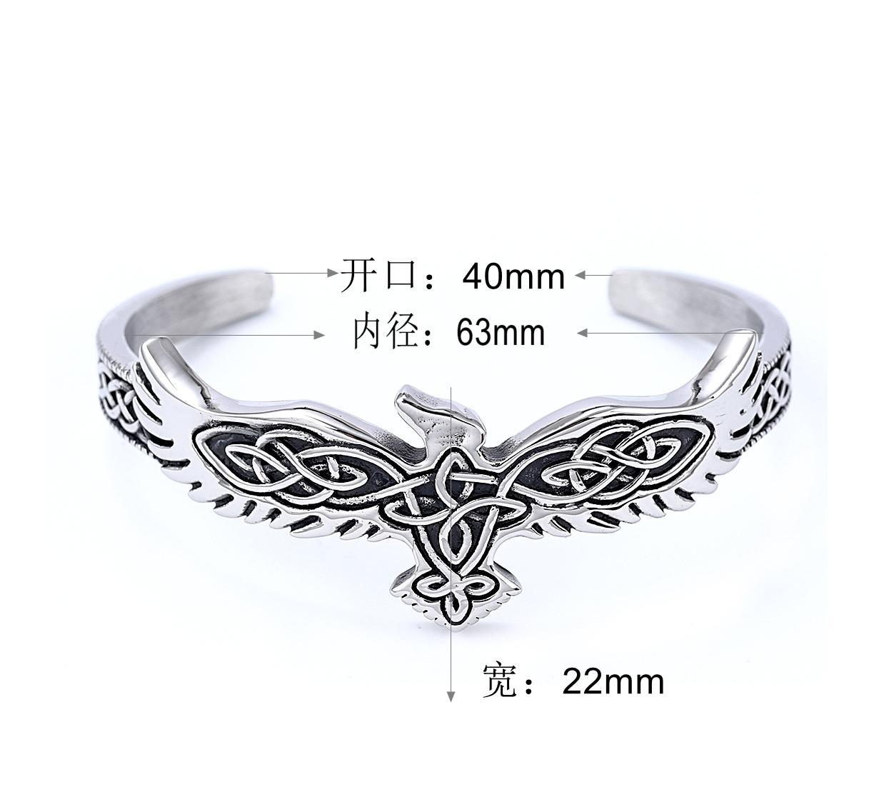 Joyería de Moda Transfronteriza, Pulsera Abierta en Forma de C de Acero de Titanio con Nudo Vikingo de Águila con Forma de Animal Personalizada