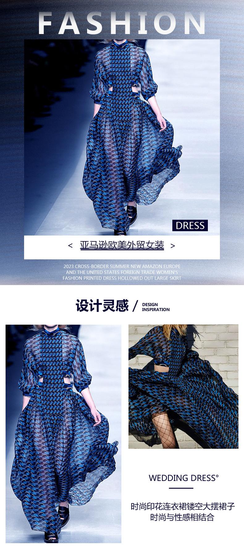 2025 Verano Transfronterizo Nuevo Amazon Exportación Europea y Americana Moda Femenina Vestido Estampado Falda Cut Out