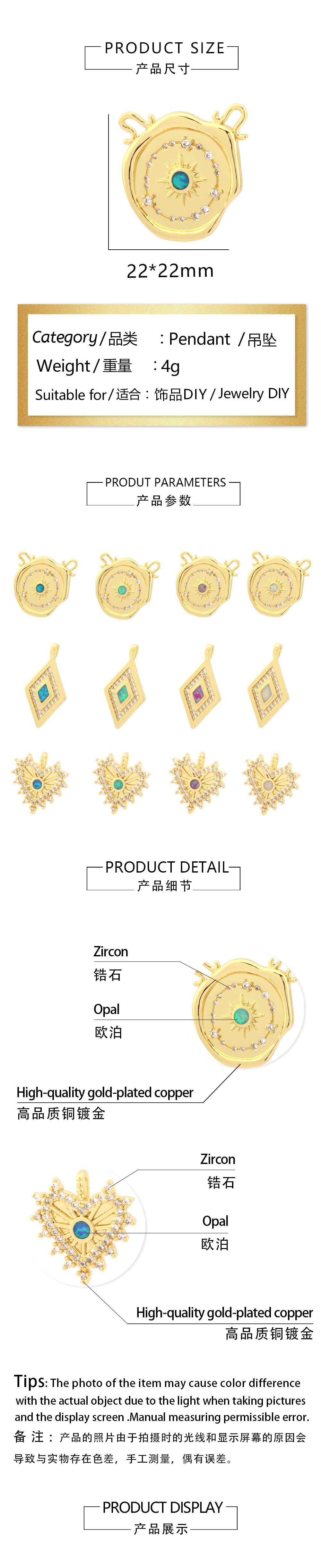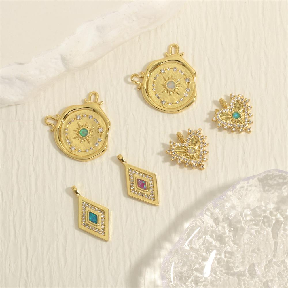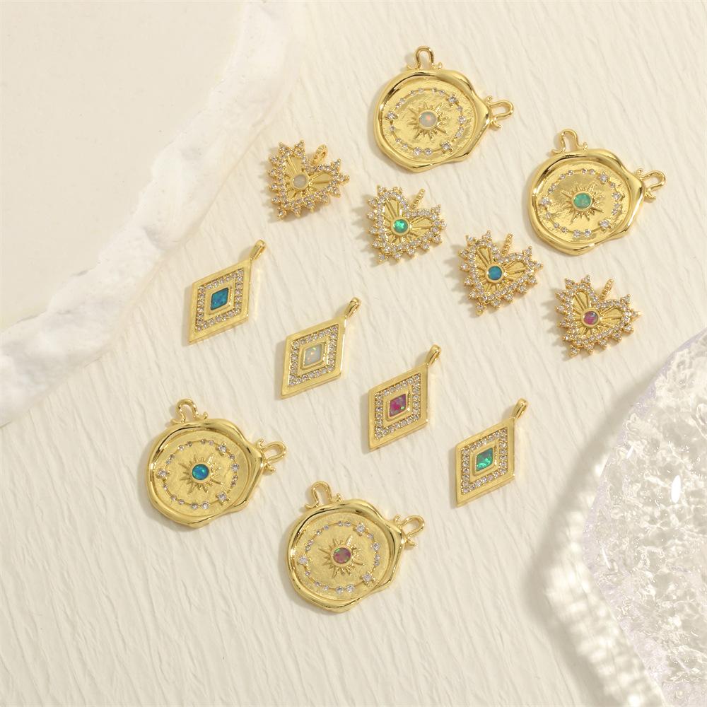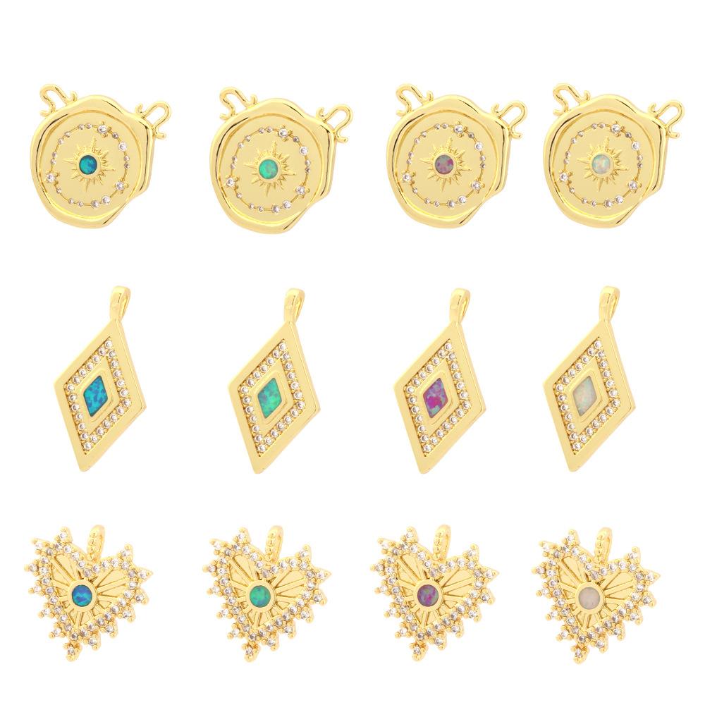 Collar con colgante retro en forma de amor, con incrustaciones de cobre, ópalo, circonita, multicolor, geométrico, diamante, accesorios de joyería DIY