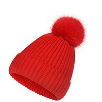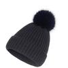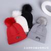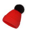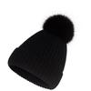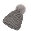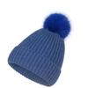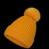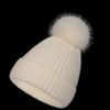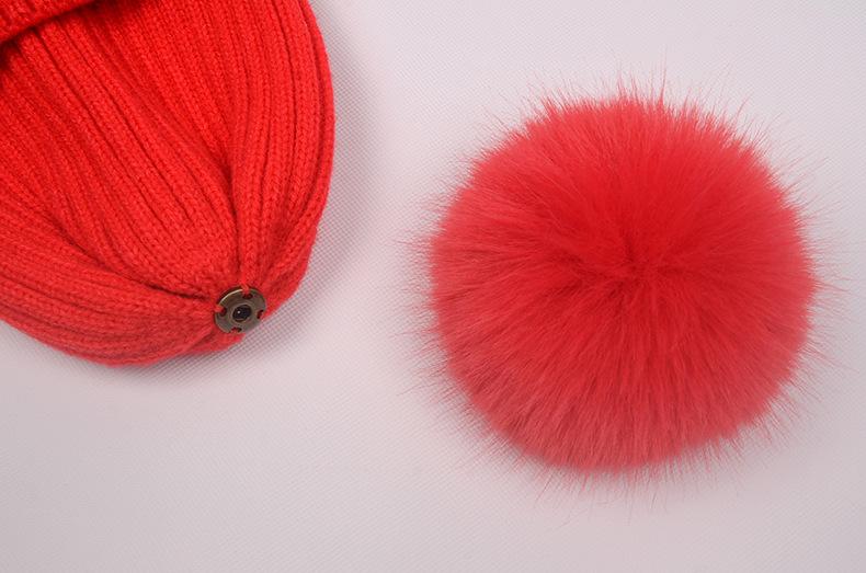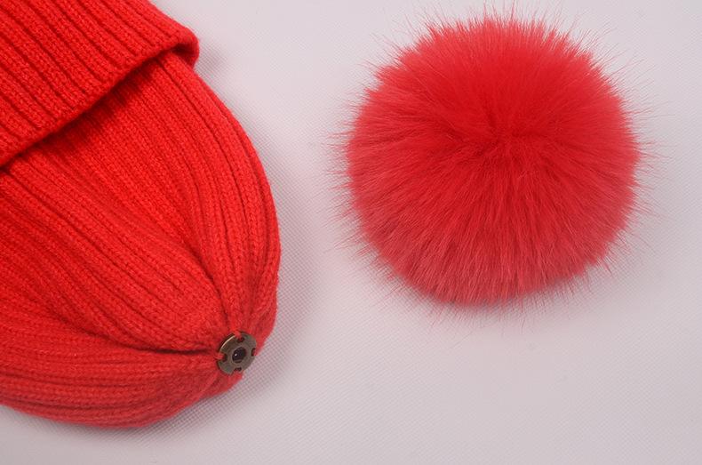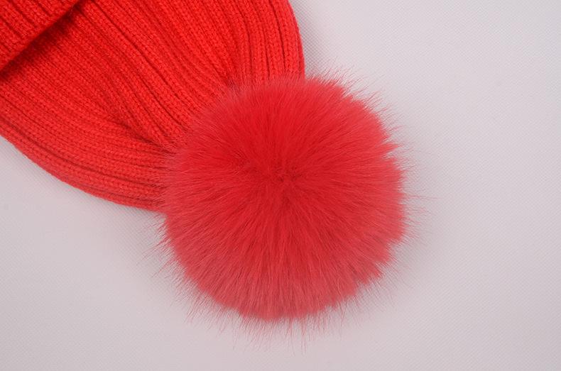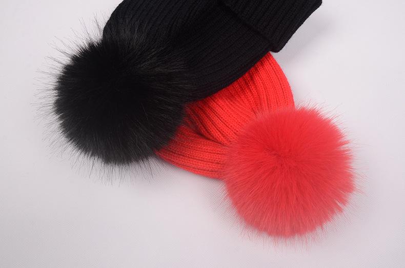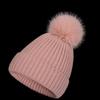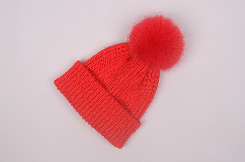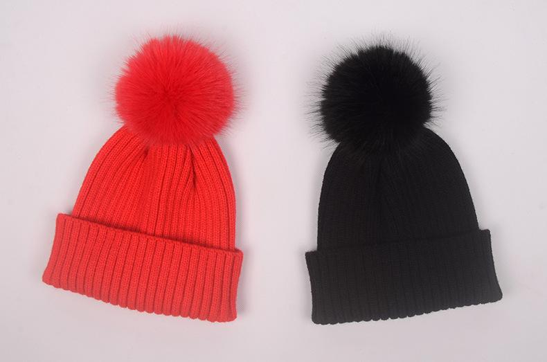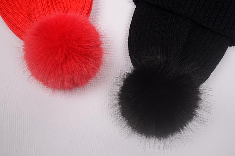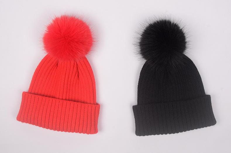 Gorro de punto nuevo de otoño e invierno europeo y americano, gorro de lana con bola de pelo grande de zorro de imitación, gorro de rayas de color liso a la moda para padres e hijos.