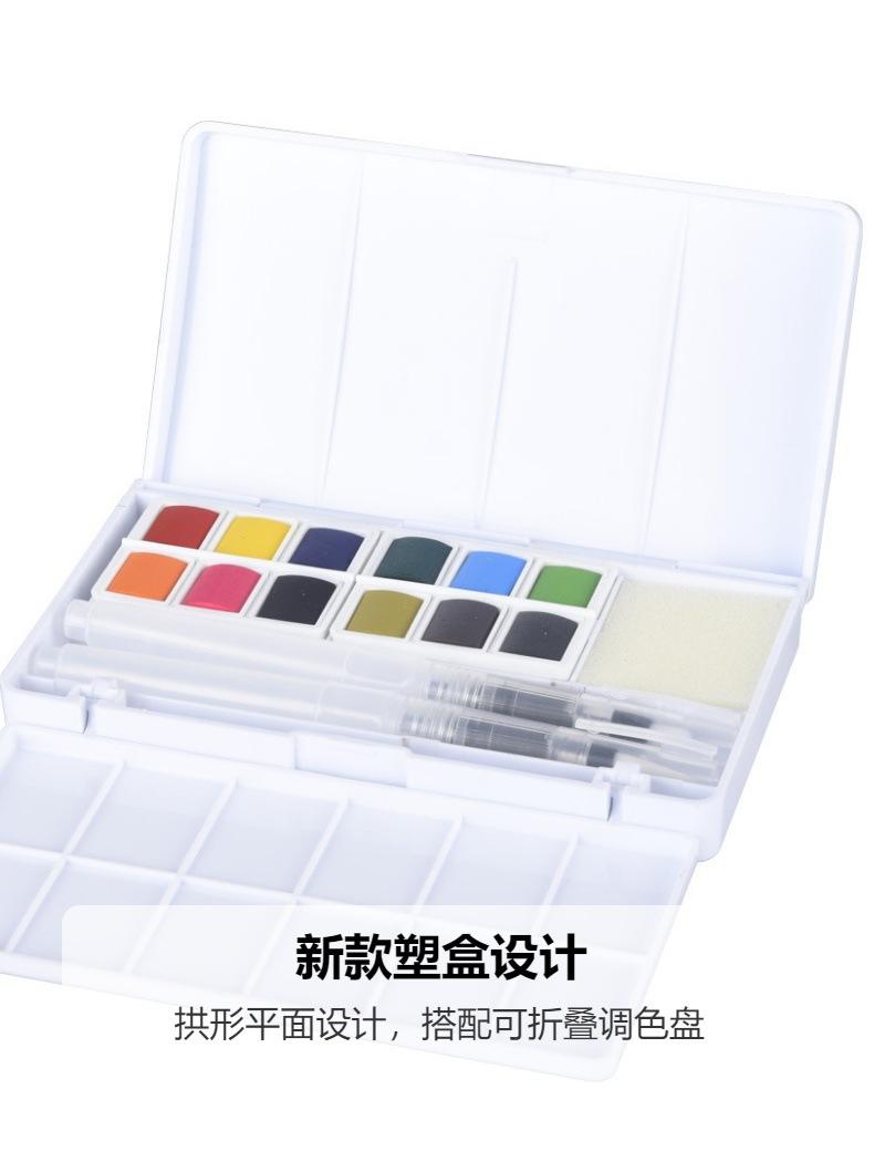 Suministro de producción de pintura de acuarela nueva caja de plástico 12 colores traje de pintura de acuarela sólida