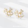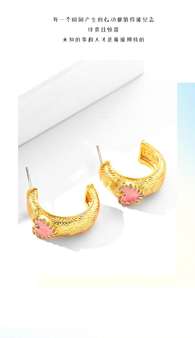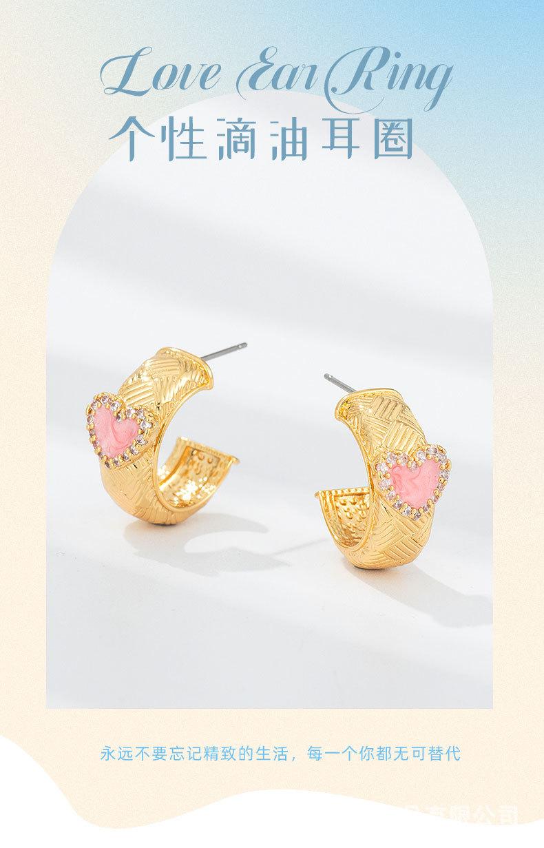 Pendientes de fábrica de joyería de Qingdao con aceite de goteo retenedor de color, pendientes femeninos de alta calidad, pendientes de oro de 18 quilates galvanizados al vacío PVD