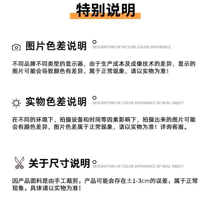 1: Todos los productos de esta fábrica tienen un precio sin impuestos. Si necesita una factura con IVA, póngase en contacto con el servicio de atención al cliente para consultar las normas fiscales. 2: Tras recibir los productos, si tiene algún motivo para devolverlos o cambiarlos, póngase en contacto con nosotros en un plazo de 7 días. Los productos solo se pueden devolver o cambiar si no presentan daños causados por factores humanos, no se han lavado y no afectan a la segunda venta en nuestra tienda. 3: Según las características de los tejidos, es inevitable que presenten alguna diferencia de color, pequeñas manchas y pequeñas zonas con hilo saltado o enganchado. Los productos que no afecten a la apariencia general no están dentro del rango de calidad. ¡Gracias por su comprensión!