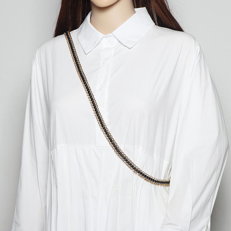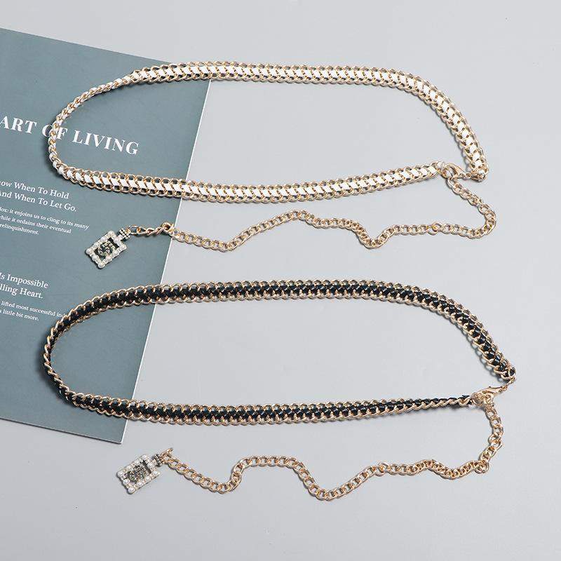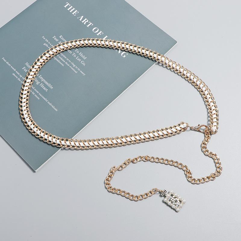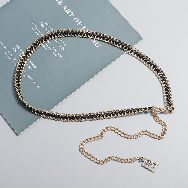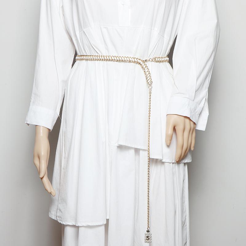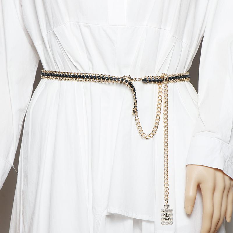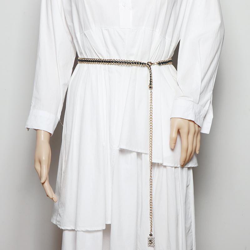 Vestido decorativo con cadena en la cintura para mujer, moderno, combinable con todo, con cadena tejida, cintura ajustada, estilo fino.
