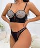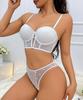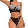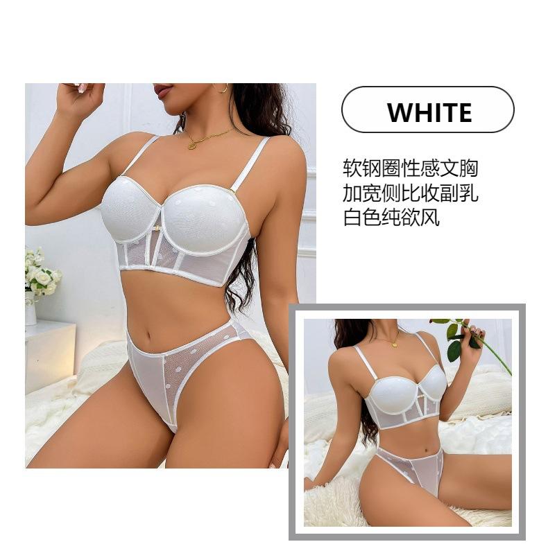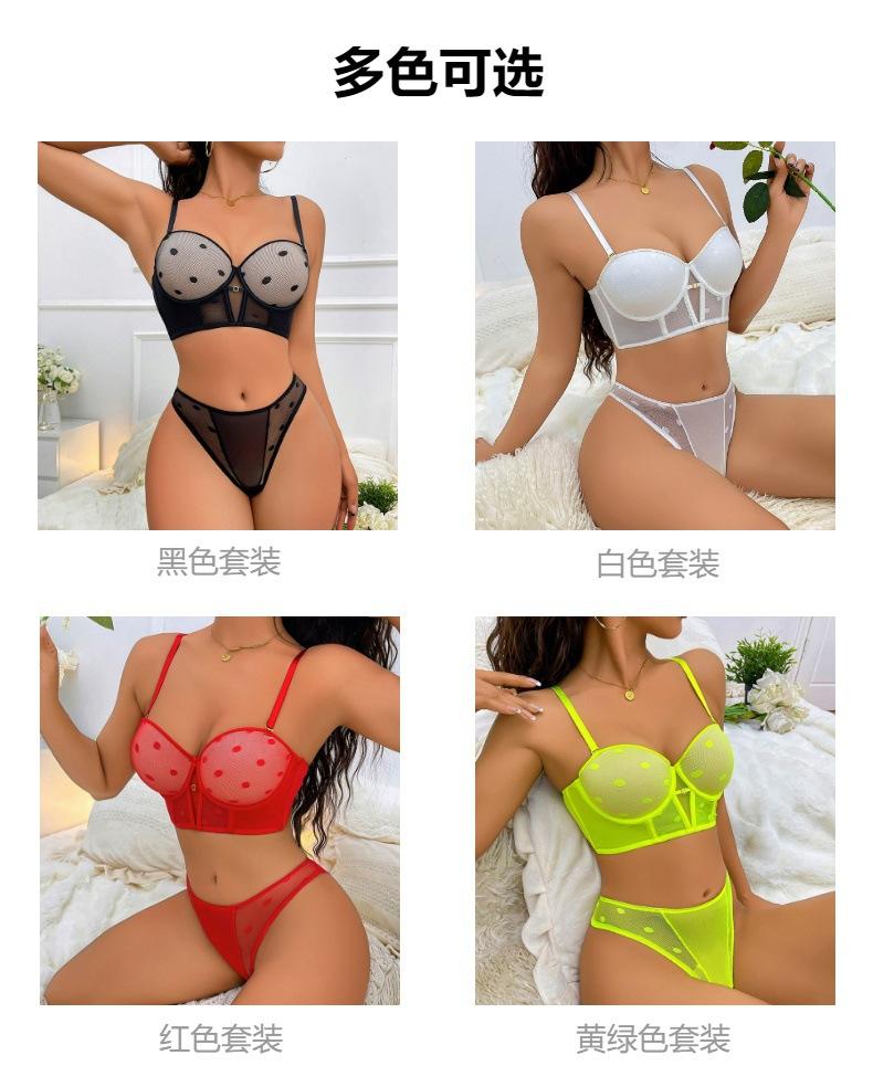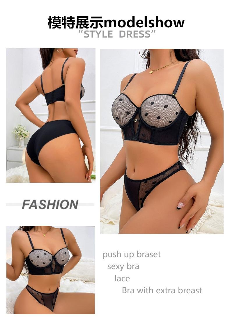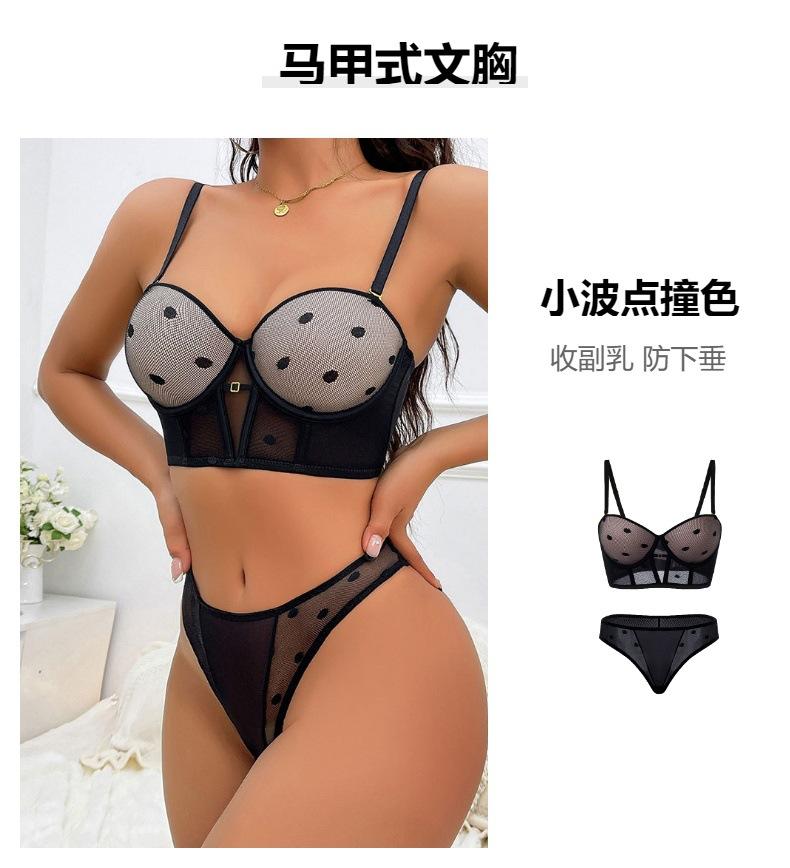 Chaleco de ropa interior sexy para mujer, sujetador antiflacidez con encaje de lunares y ondas redondas, traje de sujetador de malla