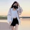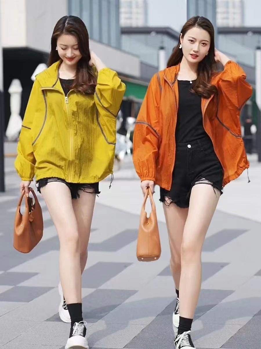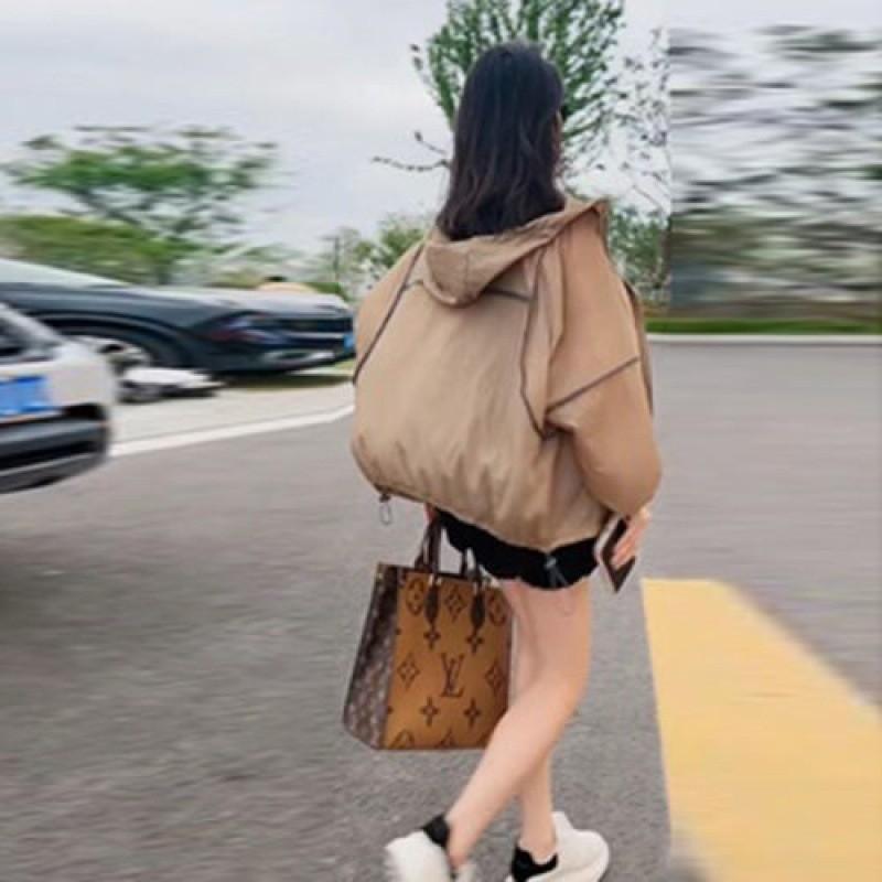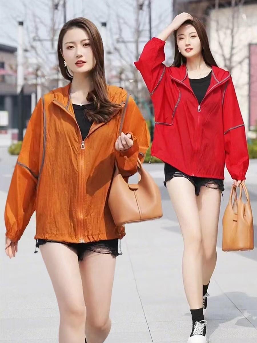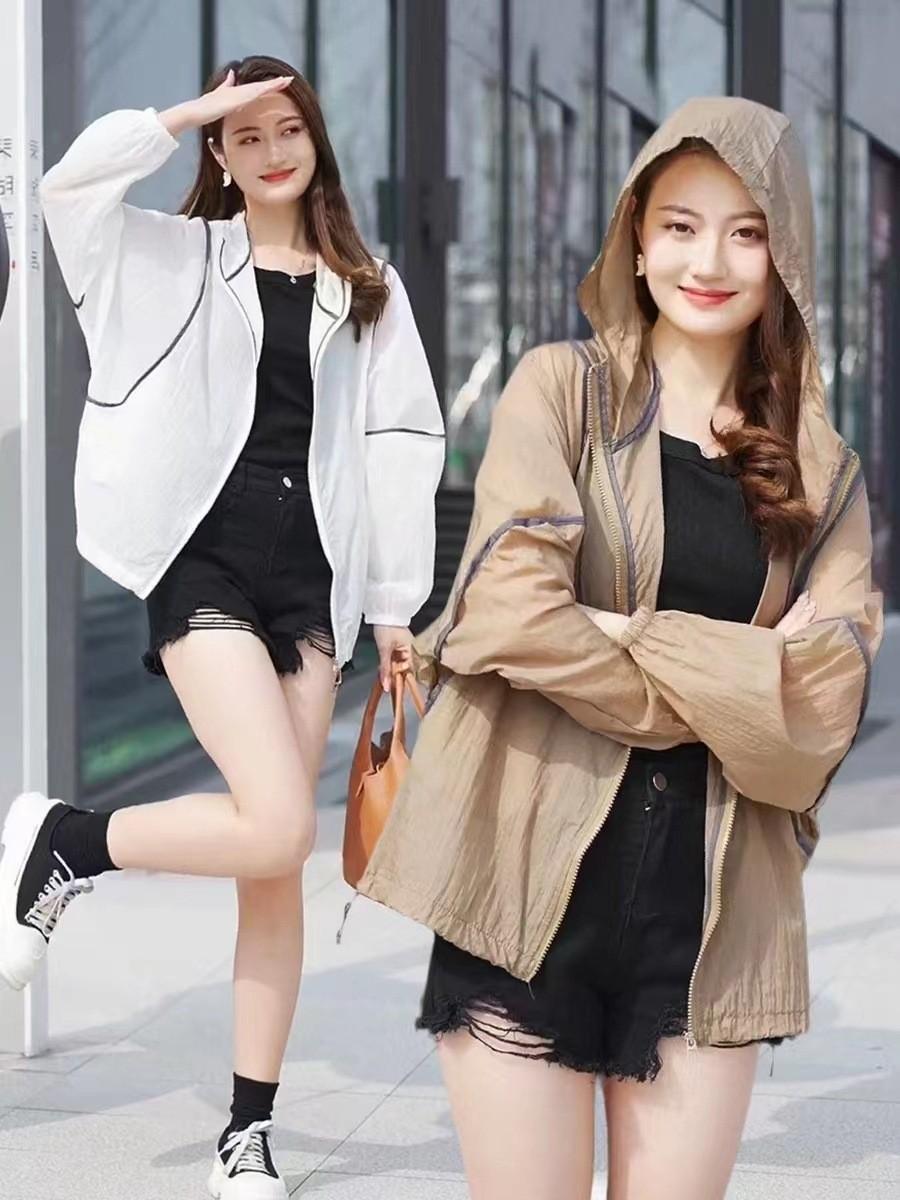 Primavera y Verano Nueva Ropa Ligera de Protección Solar Chaqueta con Capucha para Protección Solar para Mujer Top Transpirable Suelto de Color en Contraste de Manga Larga Ropa de Secado Rápido para Mujer