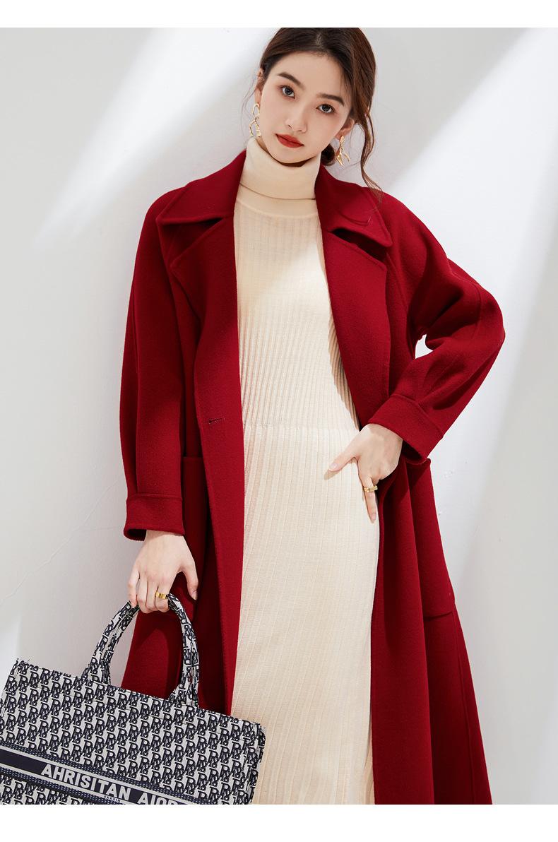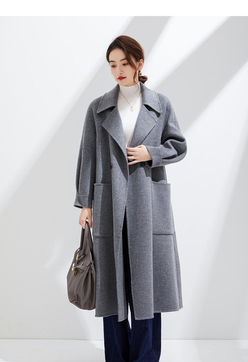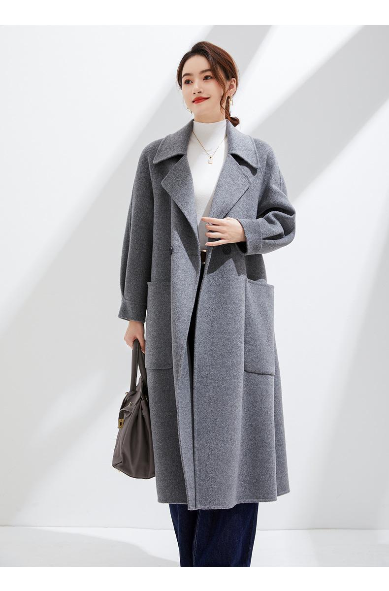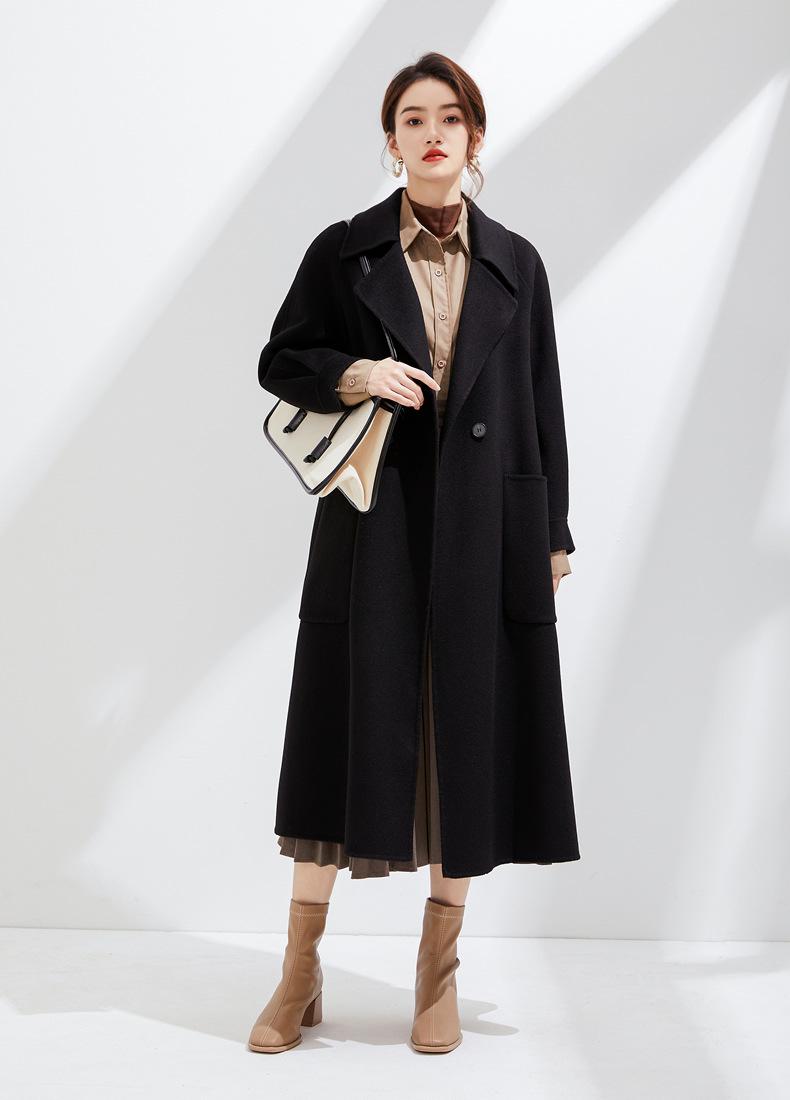 Nuevo Abrigo de Cachemira de Doble Vista para Mujer, Estilo Línea A Extendido, Cuello de Traje de Alta Gama, Abrigo de Lana Suelto y Elegante