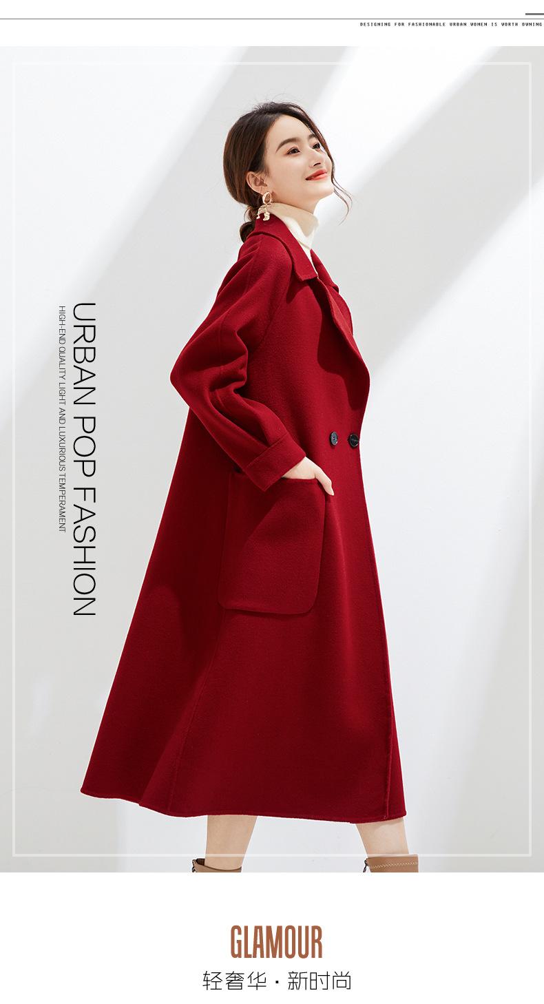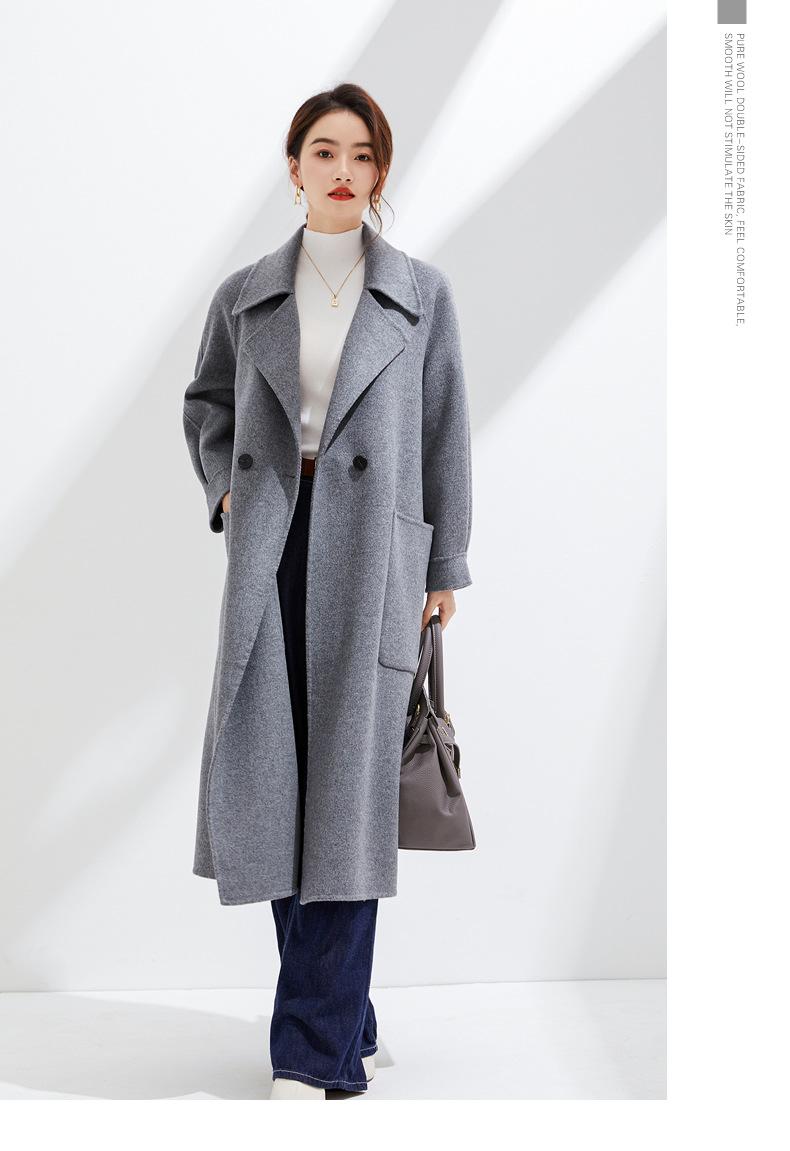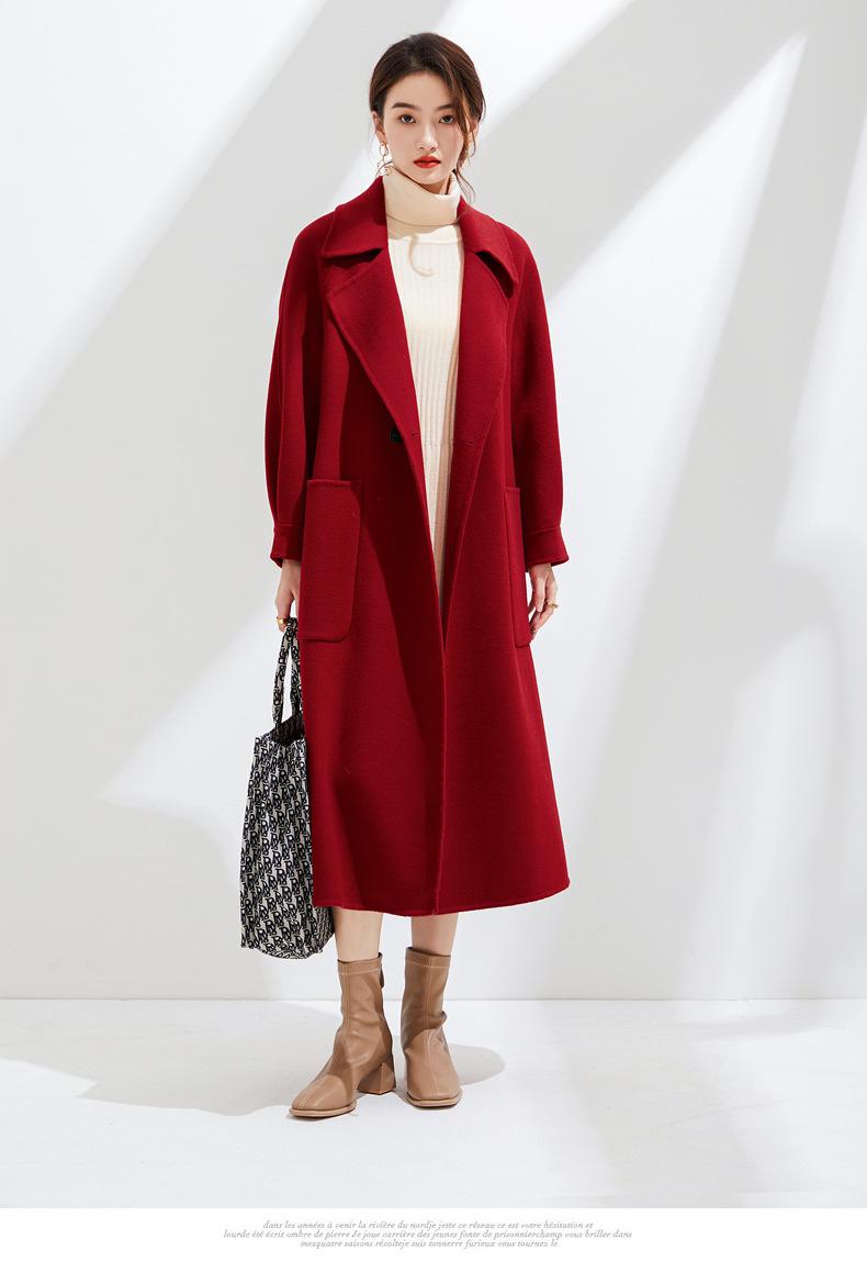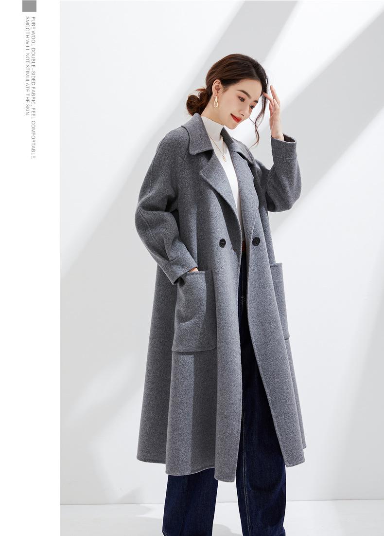 Nuevo Abrigo de Cachemira de Doble Vista para Mujer, Estilo Línea A Extendido, Cuello de Traje de Alta Gama, Abrigo de Lana Suelto y Elegante