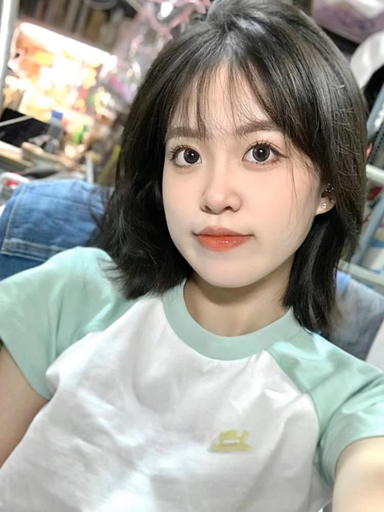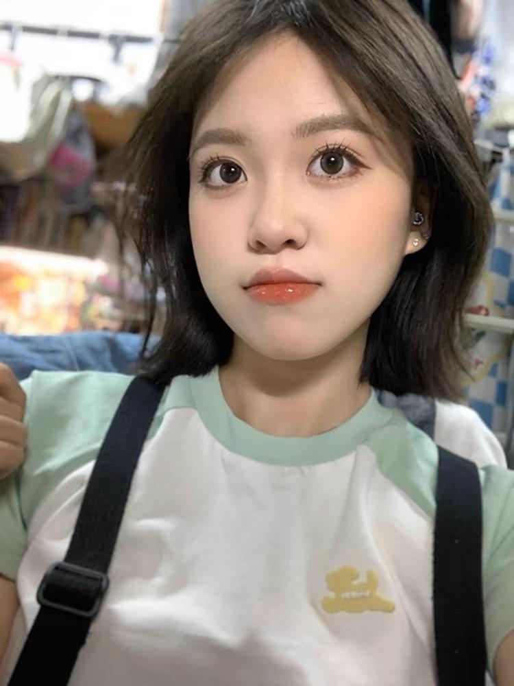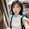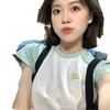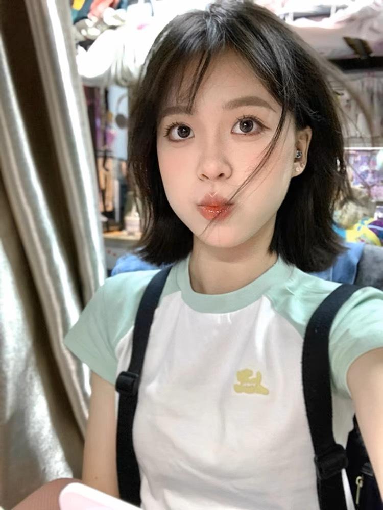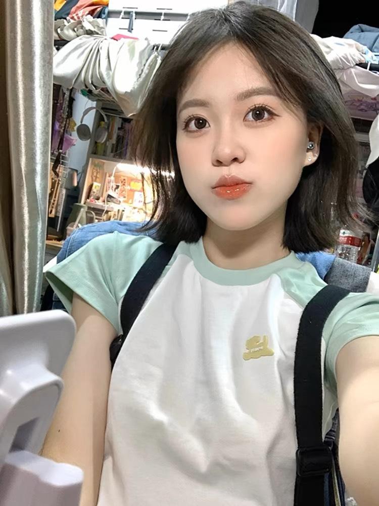 Camiseta de Manga Raglán Verde Menta con Especias Estilo Americano para Mujer Verano Diseño de Manga Corta Nicho Ajustada Hombro Top Corto