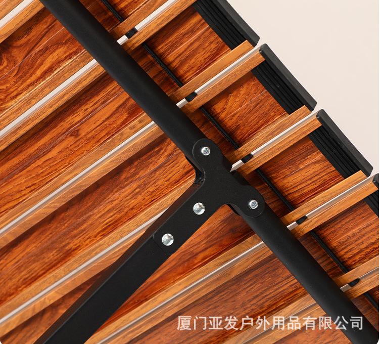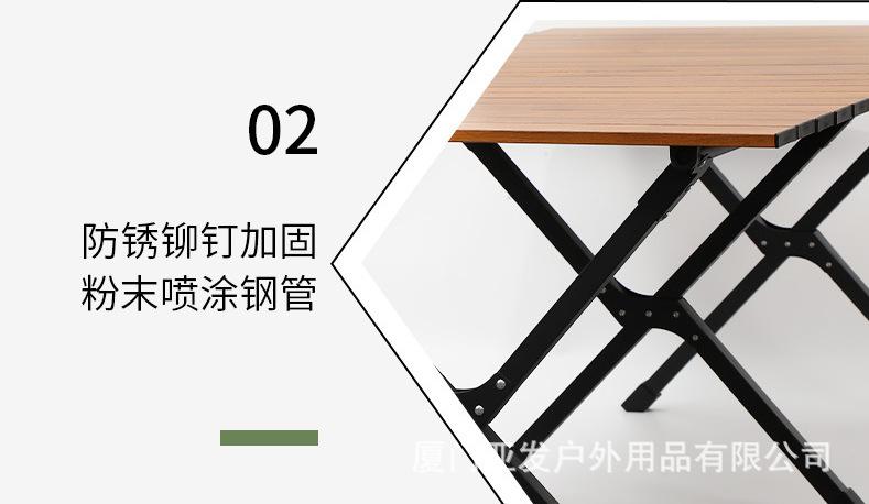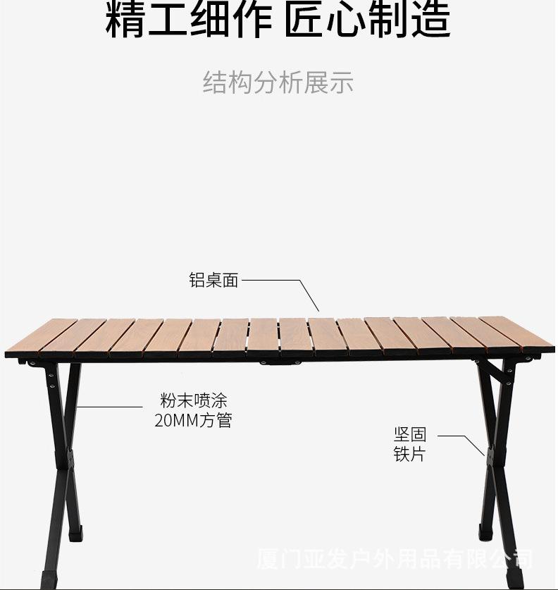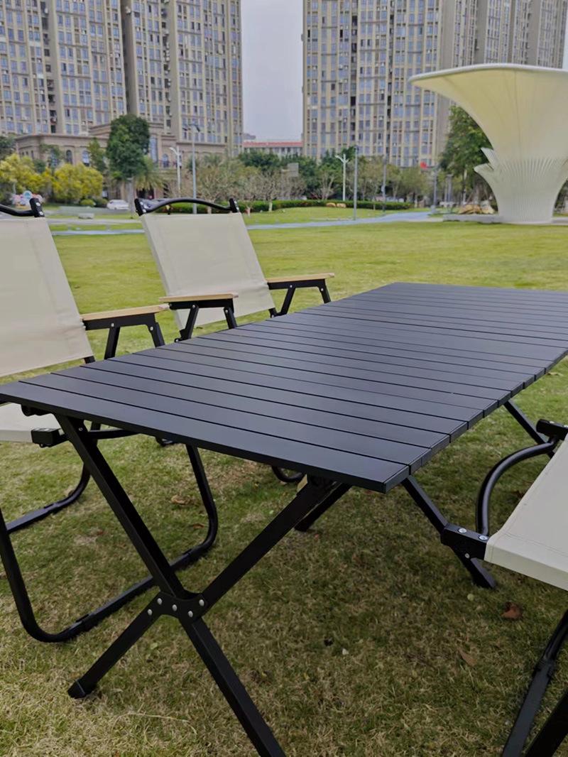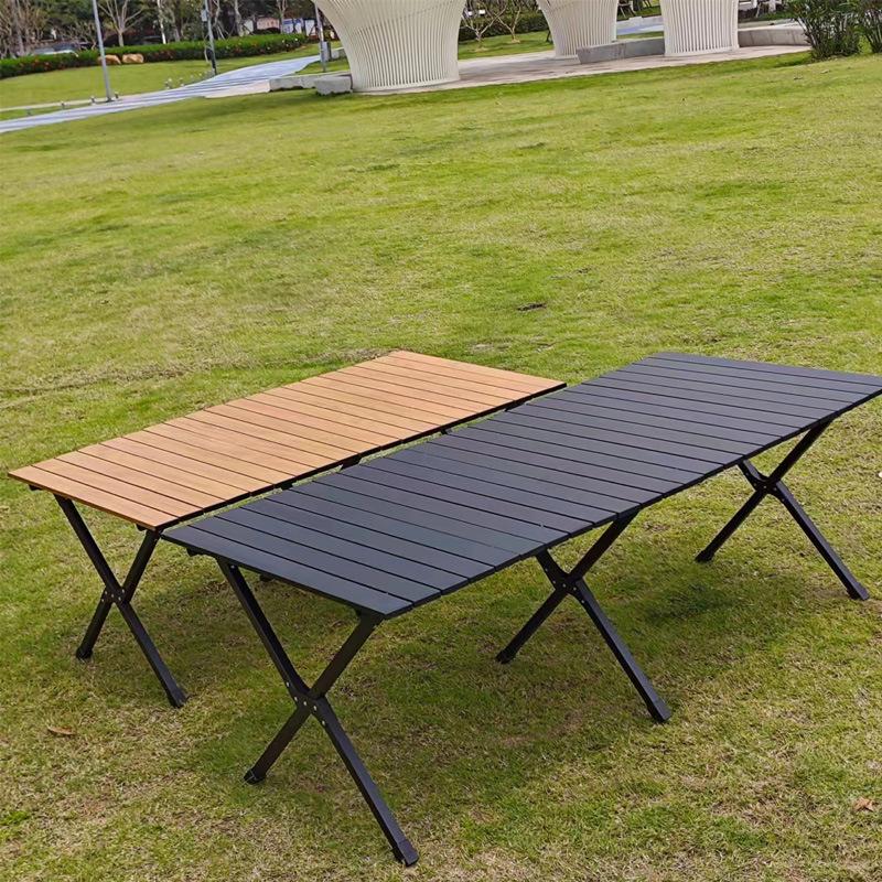 Material de la mesa plegable para exteriores: sobre de aleación de aluminio, el exterior es pintura antiarañazos de alta temperatura con patrón de mármol. Los colores incluyen negro y veta de madera imitación, y los materiales son todos de aleación de aluminio. El marco de la mesa está hecho de tubos de acero y la barra transversal central es un enlace de alambre de acero. Mesa plegable para acampar al aire libre con rollos de huevo, incluye una bolsa de tela Oxford 600D gruesa. Se puede llevar al hombro y es ligera y portátil. Ideal para acampar, hacer picnics, barbacoas y puestos en la playa. Disponemos de una gran variedad de tamaños, y tenemos en stock los que se pueden fotografiar. Ofrecemos personalización OEM. Los elevadores también vienen en diversas especificaciones. Puede equiparse con o sin bolsa de red. Esta bolsa permite guardar objetos debajo de la mesa.