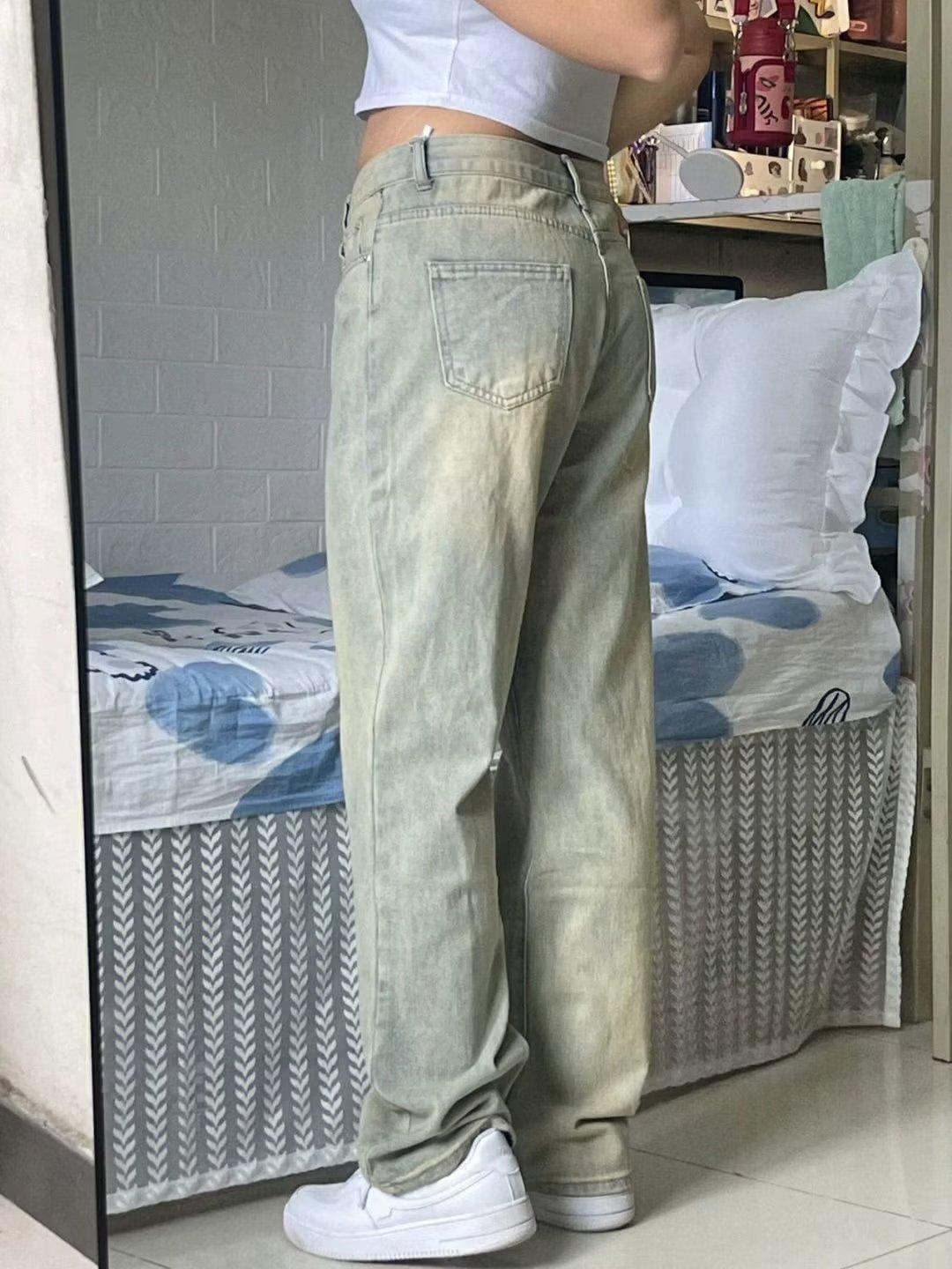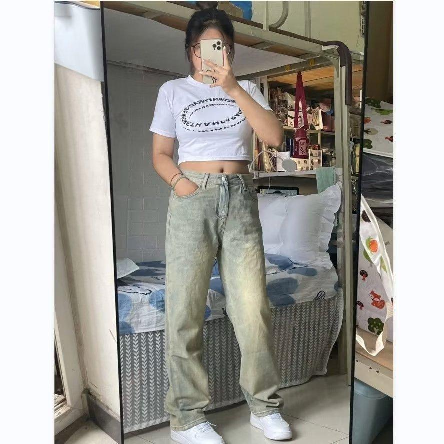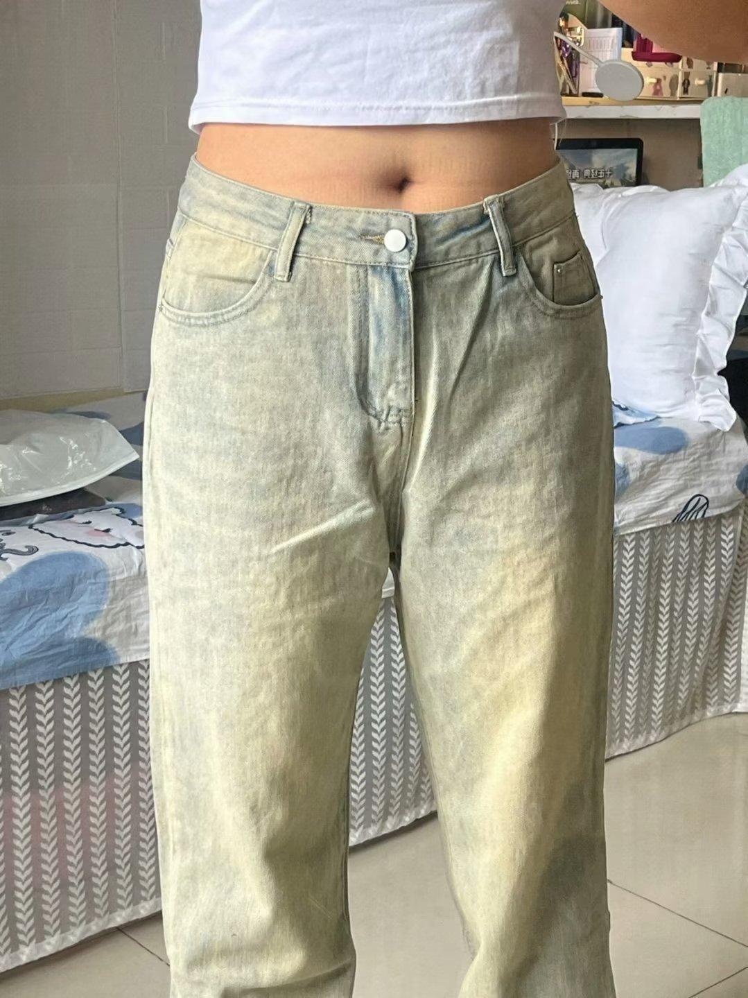 Pantalones vaqueros retro de estilo europeo y americano para mujer, de estilo barro amarillo, de cintura alta, rectos, largos y modernos, para otoño de 2023