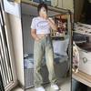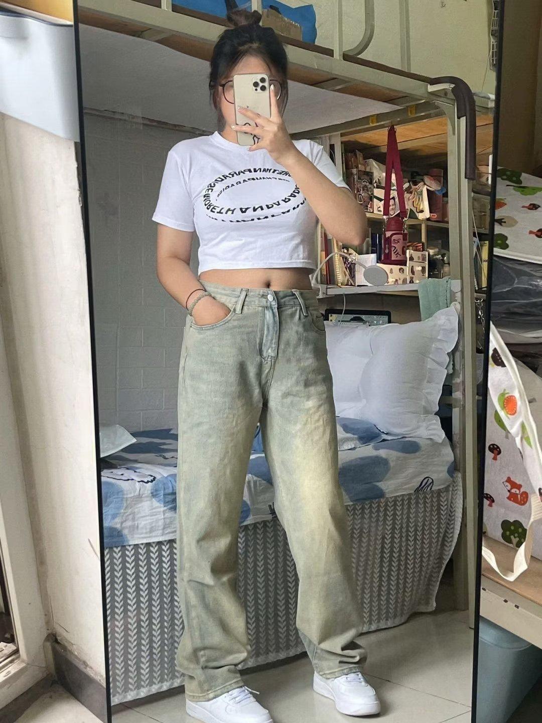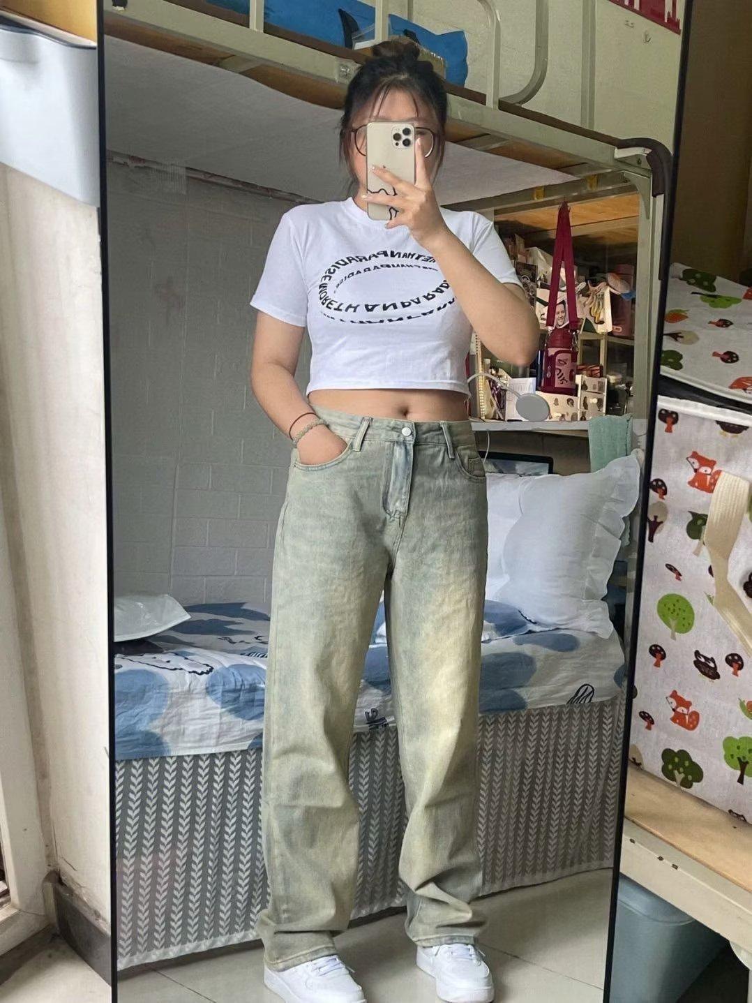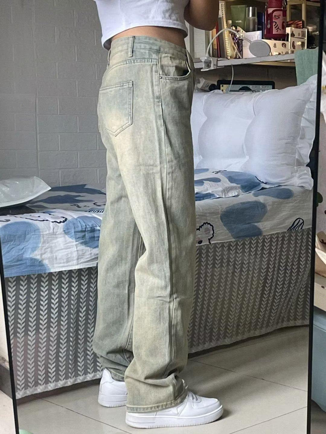 Pantalones vaqueros retro de estilo europeo y americano para mujer, de estilo barro amarillo, de cintura alta, rectos, largos y modernos, para otoño de 2023