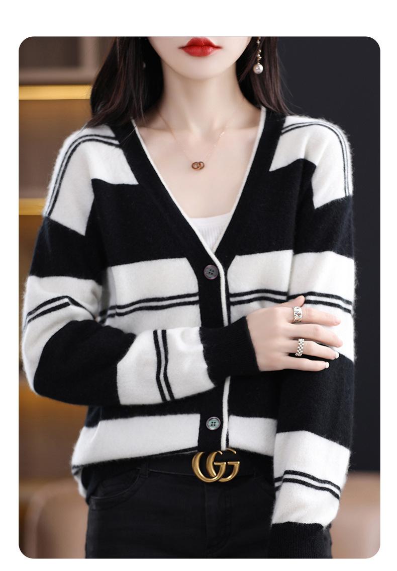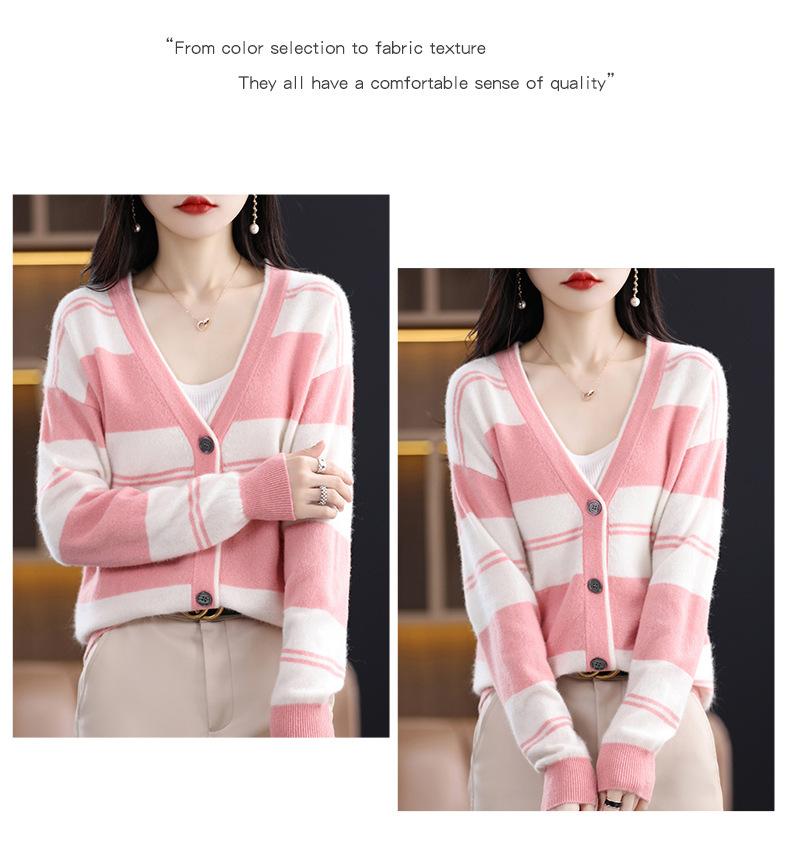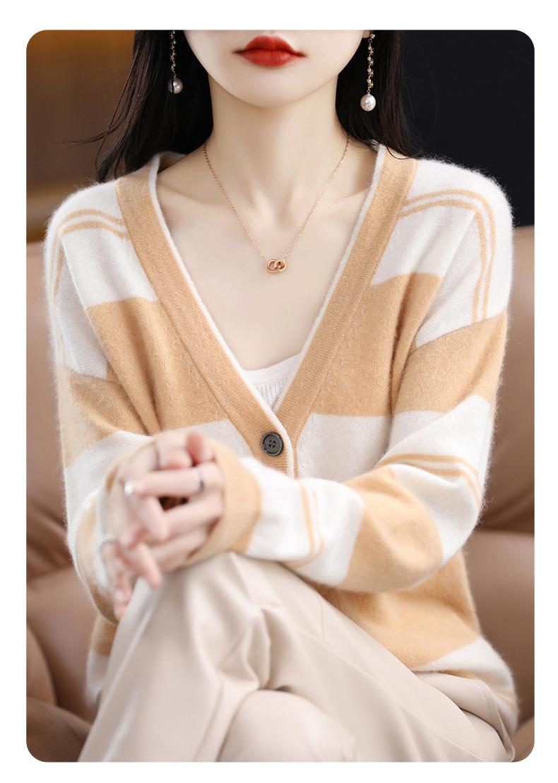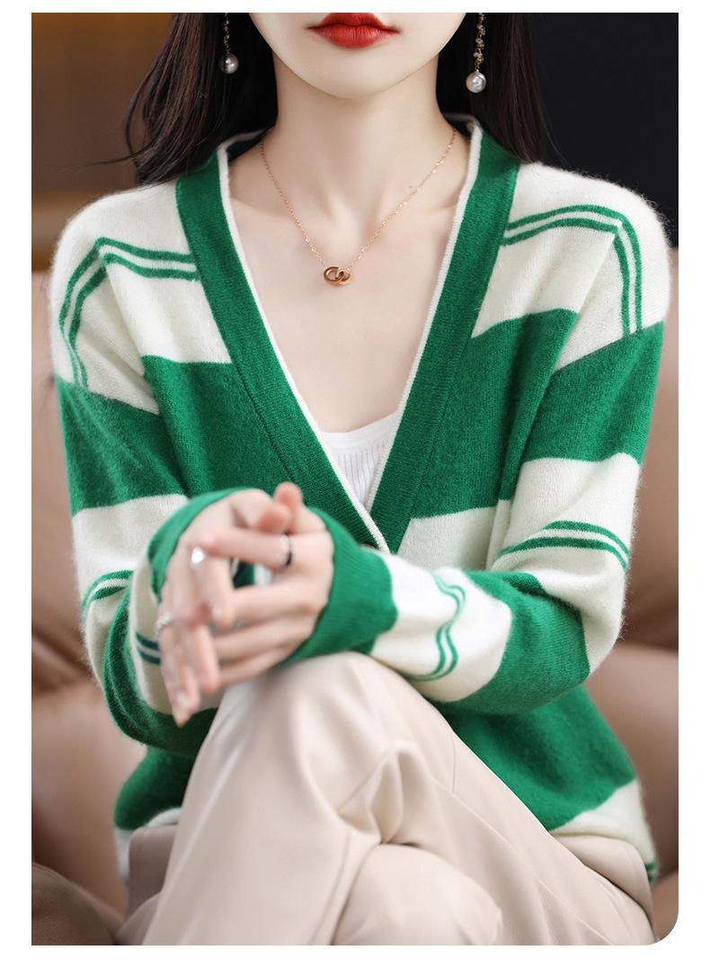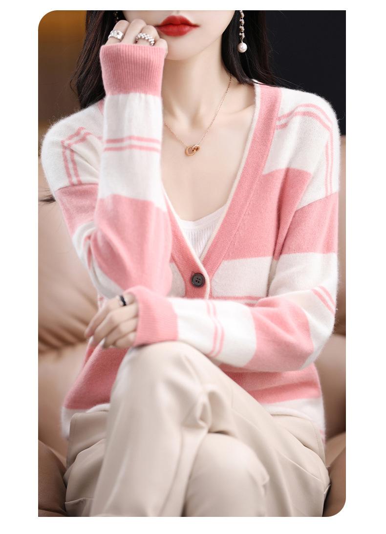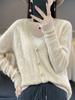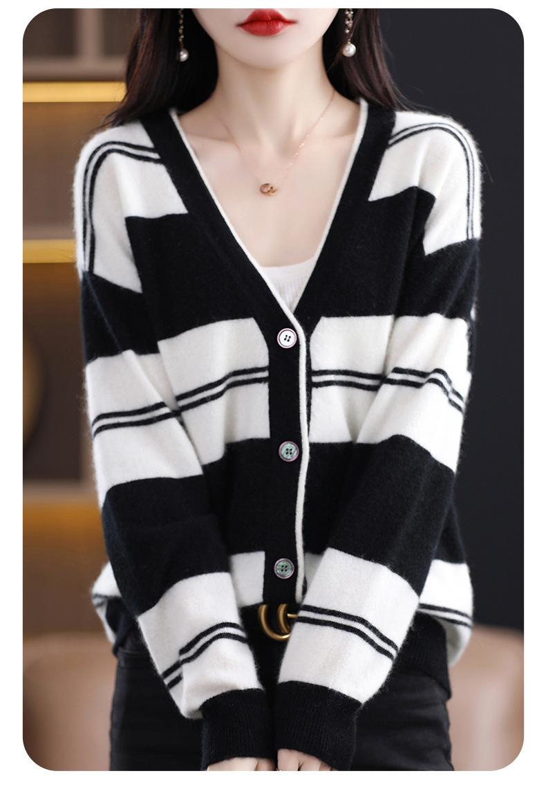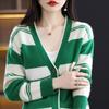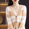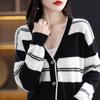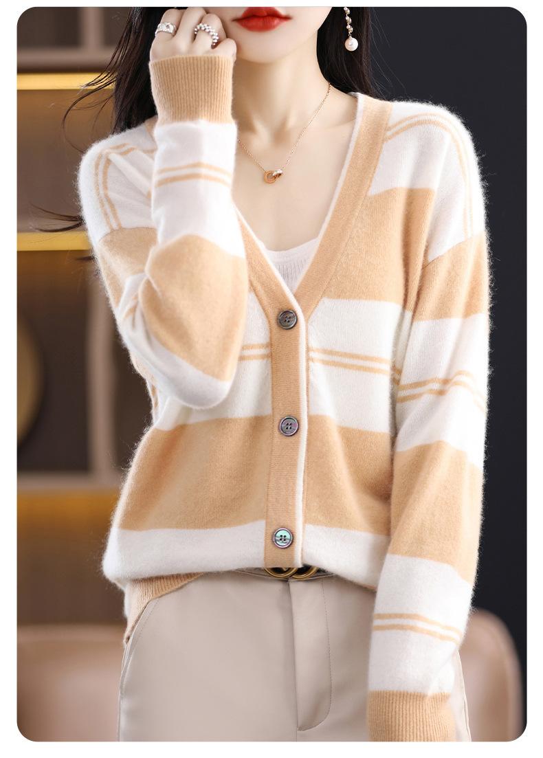 Cárdigan de lana de otoño e invierno para mujer, suéter de punto holgado con cuello en V a juego de colores, chaqueta exterior de lana para primavera
