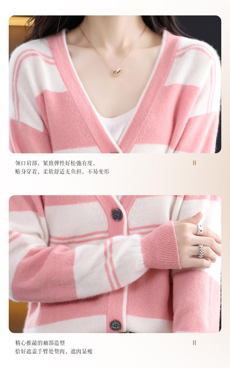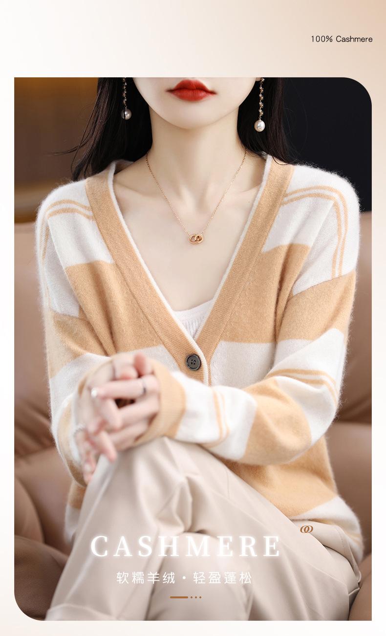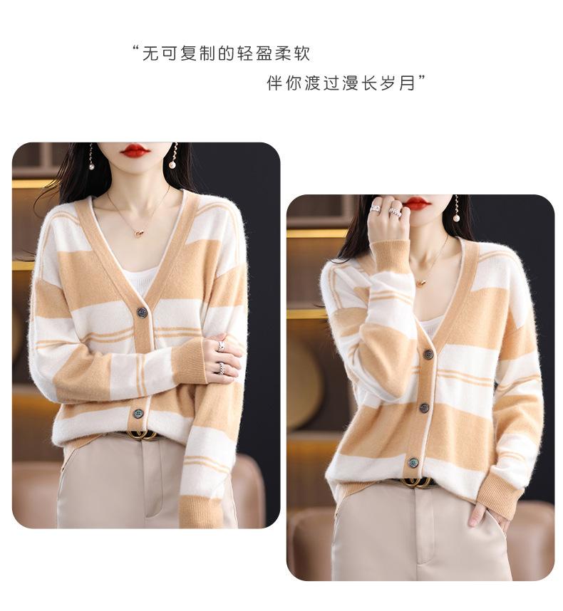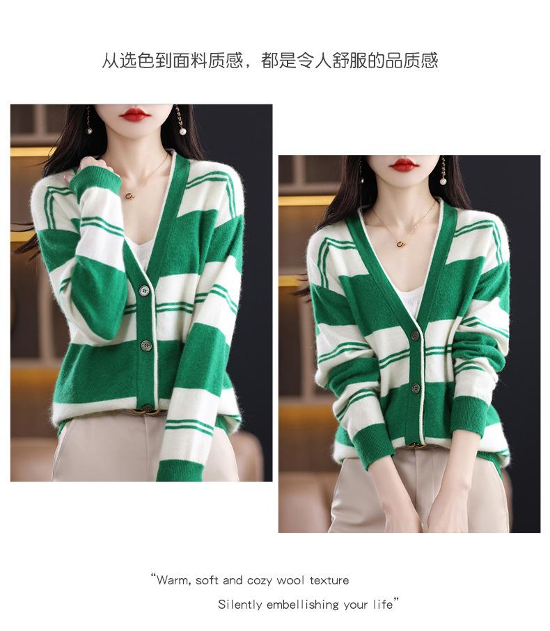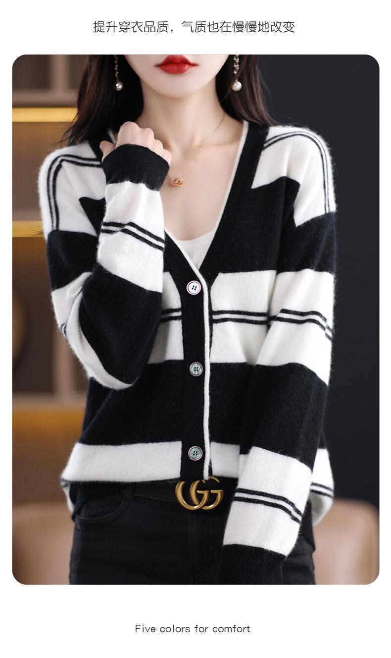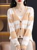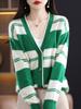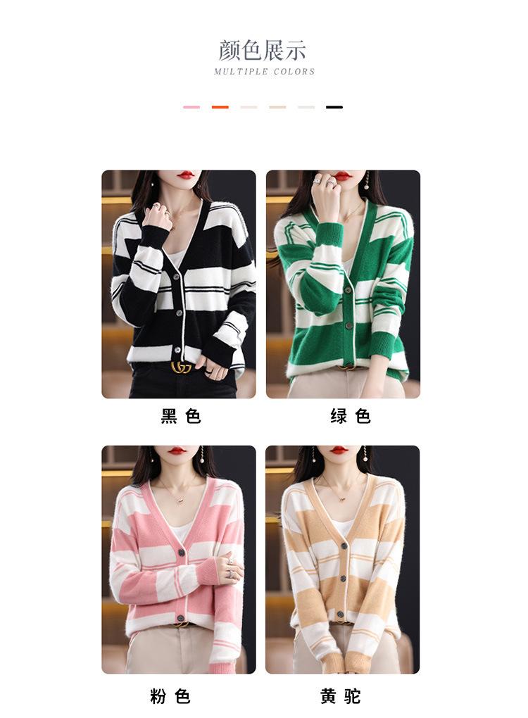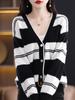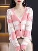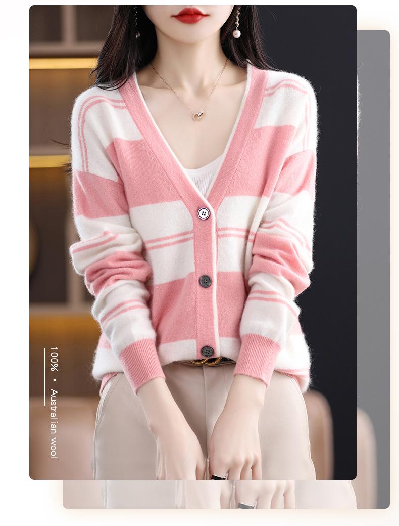 Cárdigan de lana de otoño e invierno para mujer, suéter de punto holgado con cuello en V a juego de colores, chaqueta exterior de lana para primavera