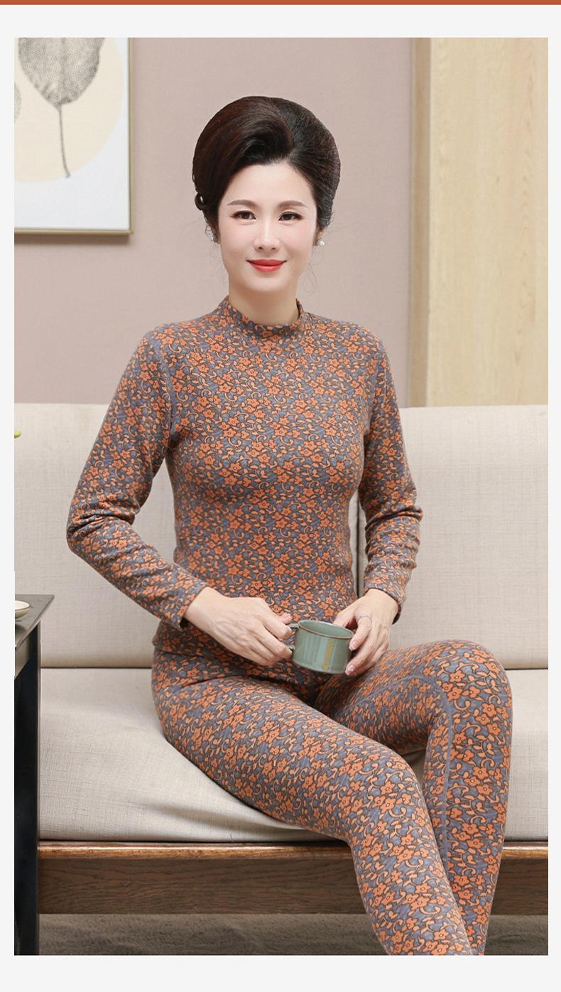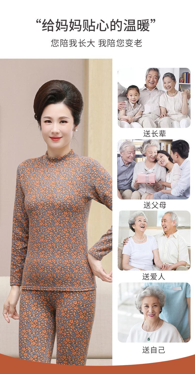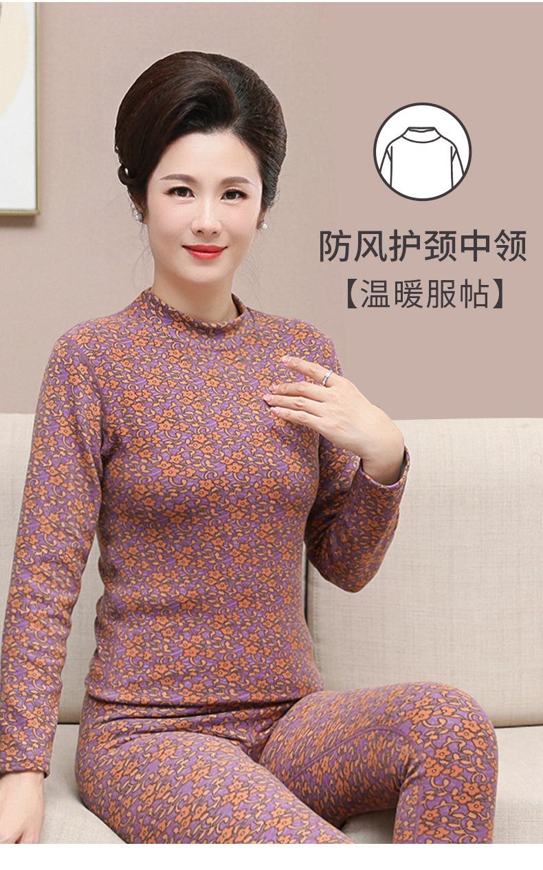 Ropa interior térmica para madres de mediana edad y mayores, ropa interior térmica para mujeres mayores, suéter de algodón de cuello medio grueso, otoño e invierno.