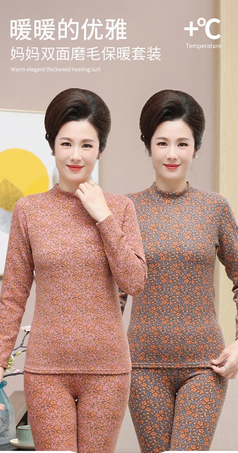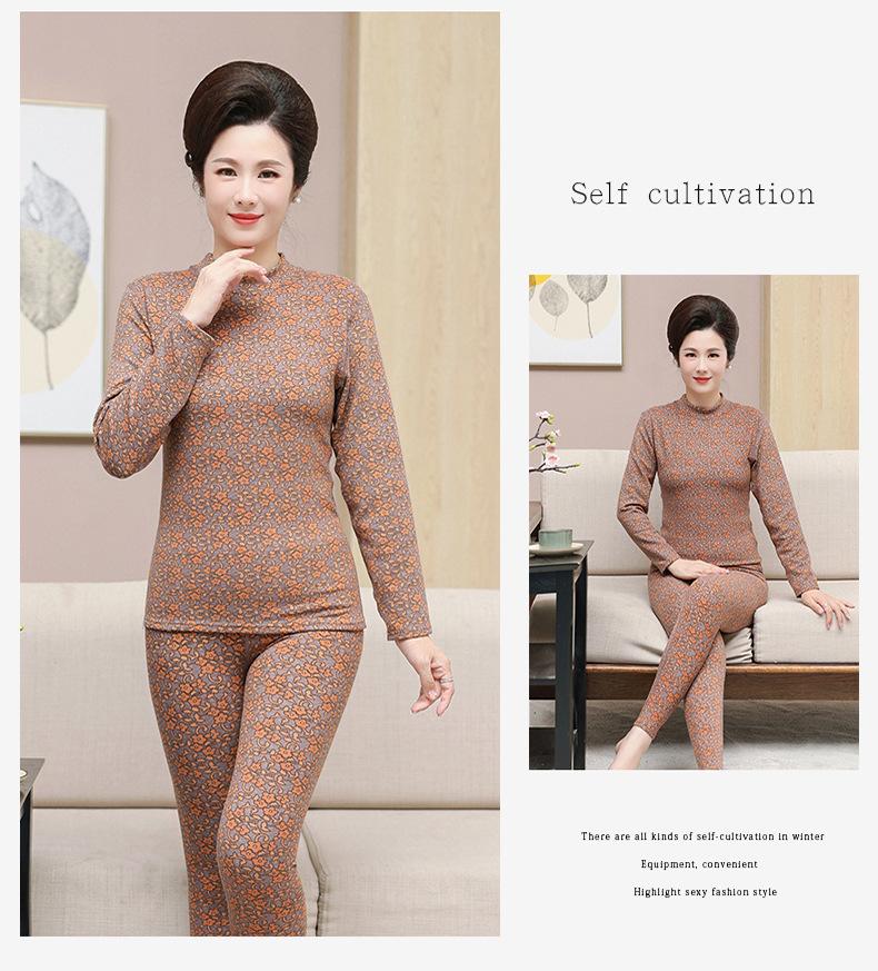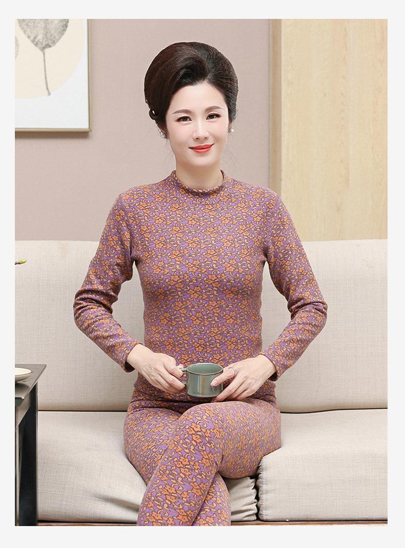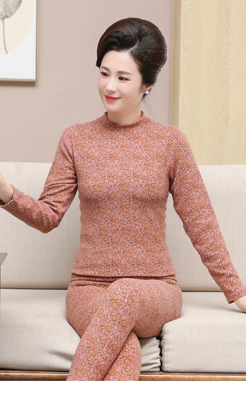 Ropa interior térmica para madres de mediana edad y mayores, ropa interior térmica para mujeres mayores, suéter de algodón de cuello medio grueso, otoño e invierno.